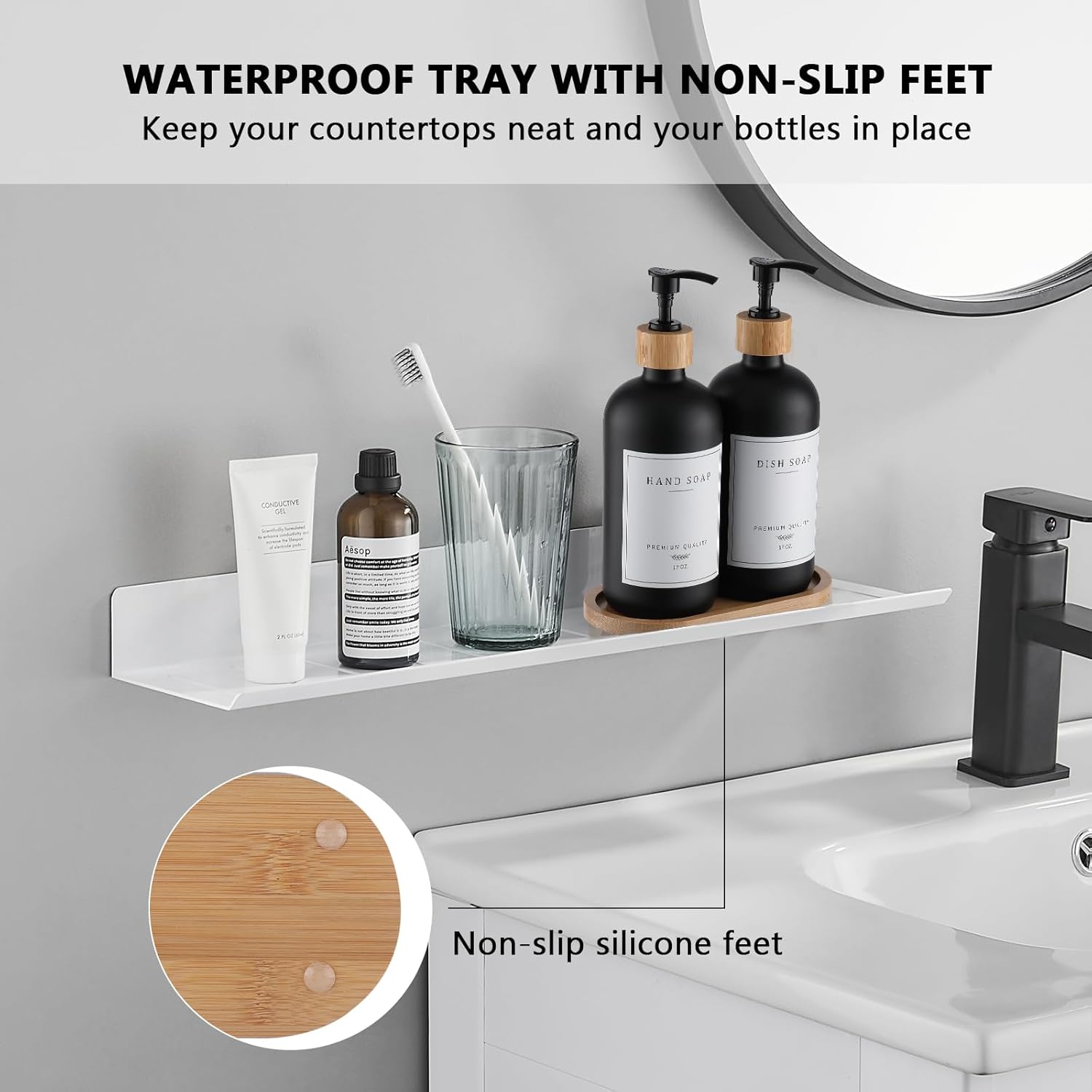 - Super organized and classy: Waterproof smooth tray keeps soap dispensers nicely together and keeps the counter more clutter-free, and doesnât take up much room. The tray has a non-skid bottom keep bottle will stay in place during operation even when the counter is wet, also protect the counter from scratches. Add a touch of elegance to a boring sink area, get compliments about it whenever guests are over. ADD TO CART now.