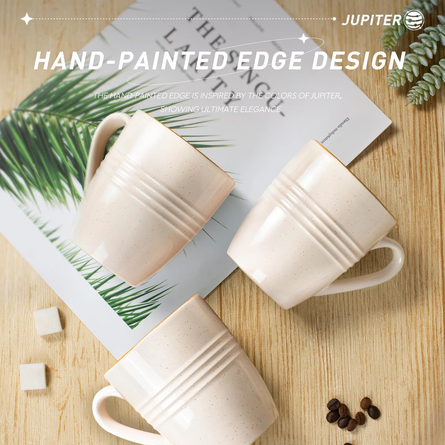 - 【Attractive Design】Our coffee cup was elaborated by artisans. Its speckles and hand-painted edge are great distinctive. The design of ring is inspired by Europa's orbit around Jupiter.