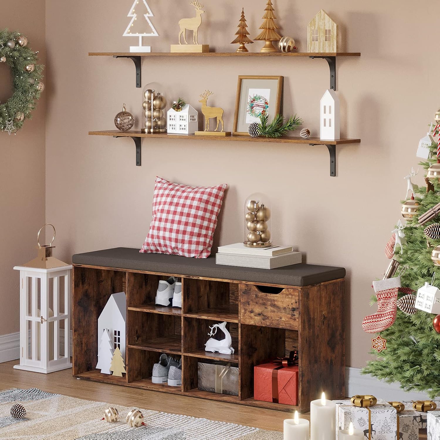 - ăPerfect Home DecorăL-shaped iron bracket, with super stability and elegant simplicity, never out of date. Mid-century design adds a vintage and stylish vibe to your home. Rusticity wood grain and retro color embellish the home decoration, making your home full of modern and art. Enjoy a graceful life and feel the art of home easily in the perfect combination of smooth lines and heavy duty metals