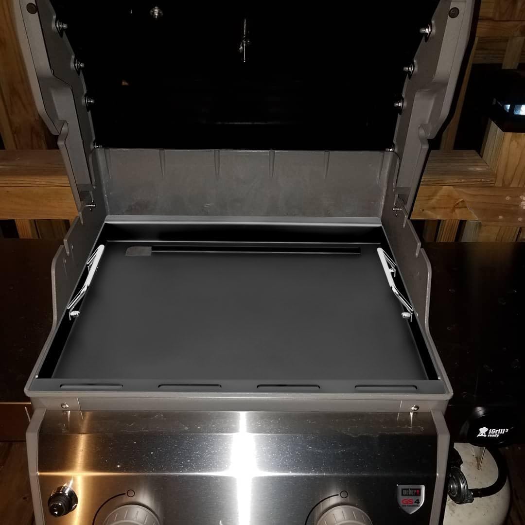- 【Features】The Inserts griddle is closer to the fire source and heats up more easily than other griddles placed on the grates to achieve the temperature needed to cook delicious food. The Griddle baking is made of Carbon Steel, durable and easy to clean, need to be heated and oiled 1-2 times before use for better results.