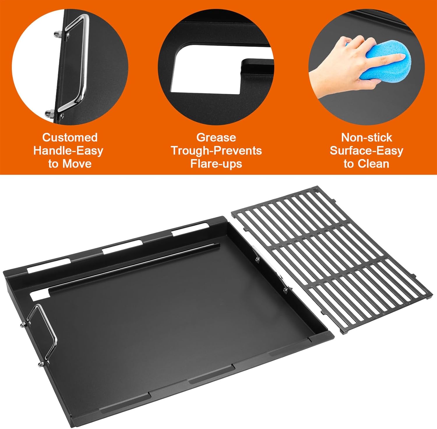 Upgrade Griddle Inserts and Grate for Weber Genesis II 400 Series Gas Grills, Flat Top Griddle with Handles for Genesis II E-410 S-410 E-435 S-435 E-440 S-440 LX E/S-440, Replace for Weber 6789