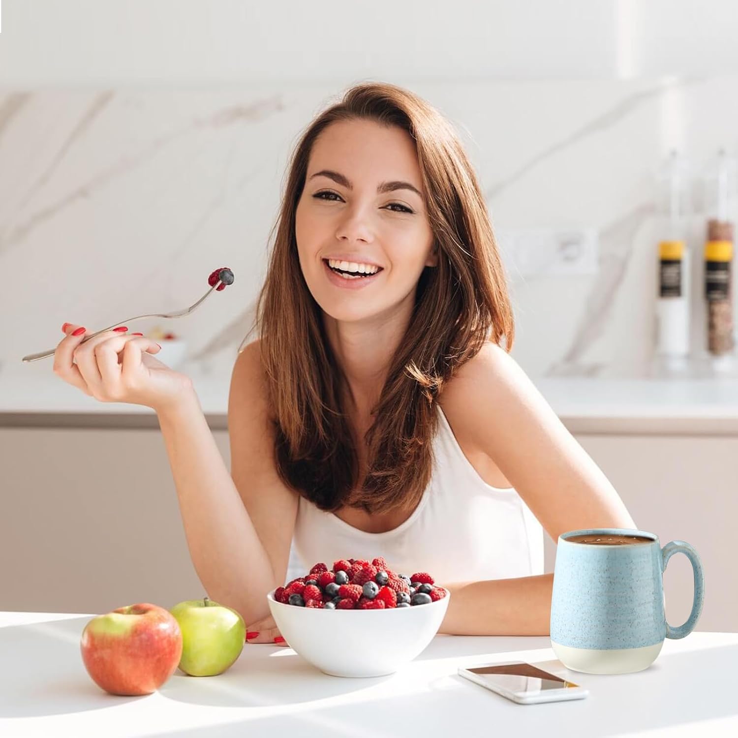- TRANQUIL BLUE ELEGANCE: These stoneware mugs add calming elegance to any setting. Their tranquil hue evokes a sense of peaceful relaxation, elevating the ambiance of your space whether it's a quiet morning or a lively evening gathering