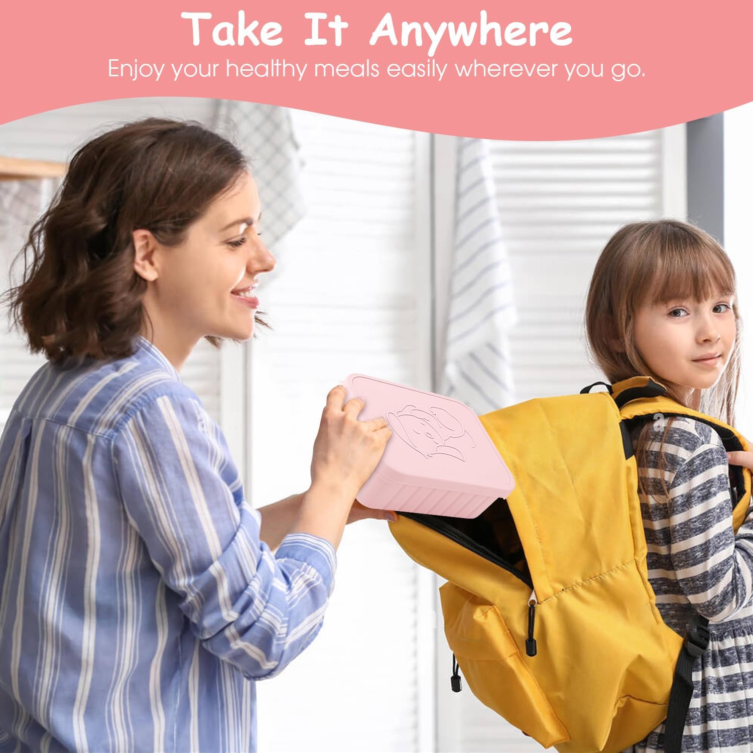 - 【Say Goodbye to Mess】The silicone bento box lunchbox for Kids has individual compartment to keep food neat and separate. The leak proof silicone lids seal tightly around the lip of the container and ensure that the box remains tightly sealed during transport, preventing any spills or accidents. Easy to open and close for little fingers. Meanwhile,anti-slip design make the silicone bento box more safe