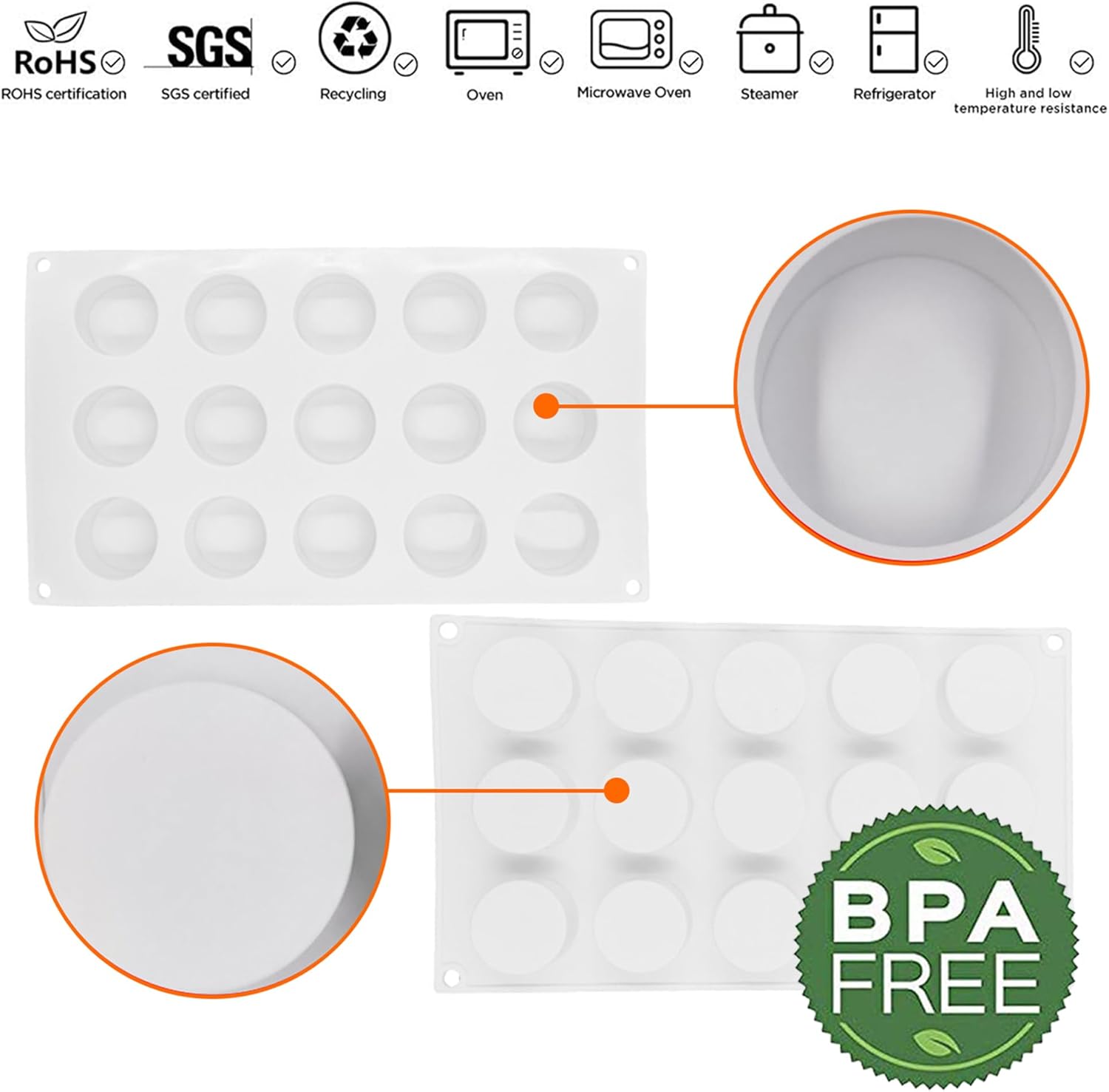 OCPO Kitchen 3D Round Cylinder Silicone Mold for Baking Mousse Cake, Candy, Pastry, Chocolate, Cupcake, Cookie, Cake Decoration Mold, Round Shape (15-Cavity)