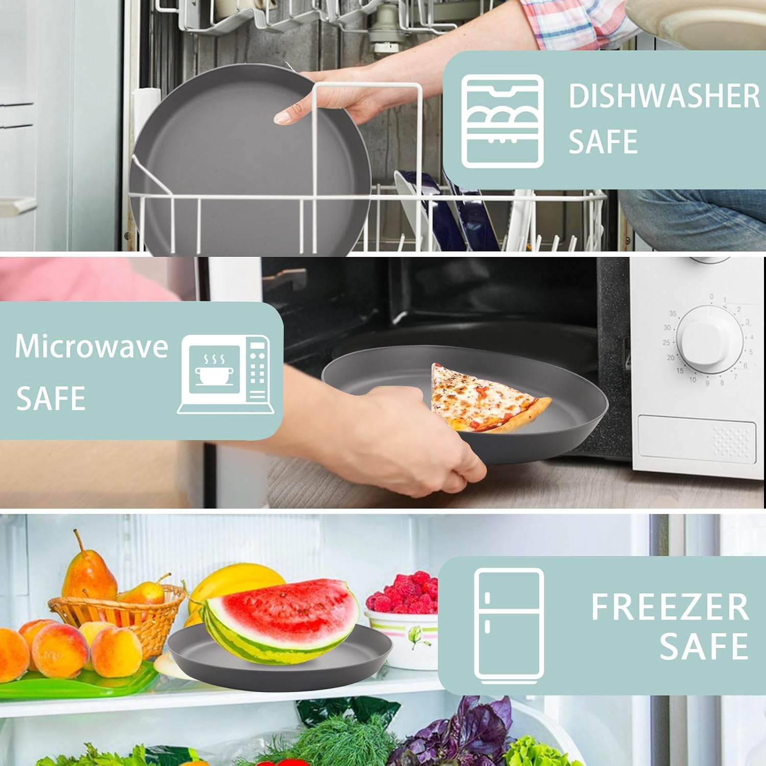 18pcs Dark Grey Wheat Straw Plate Set - Unbreakable Deep Dinner and Lightweight Salad Plates for Camping, Kitchen, Picnics