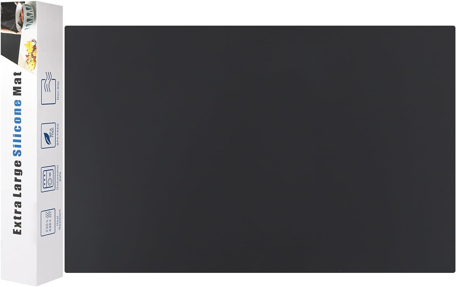 Silicone Mats for Kitchen Counter Thicker Extra Large Heat Resistant Mats Countertop Protector Liners for Bottom of Oven Air Fryer Coffee Maker, 24" x 16" x 2 mm, Black