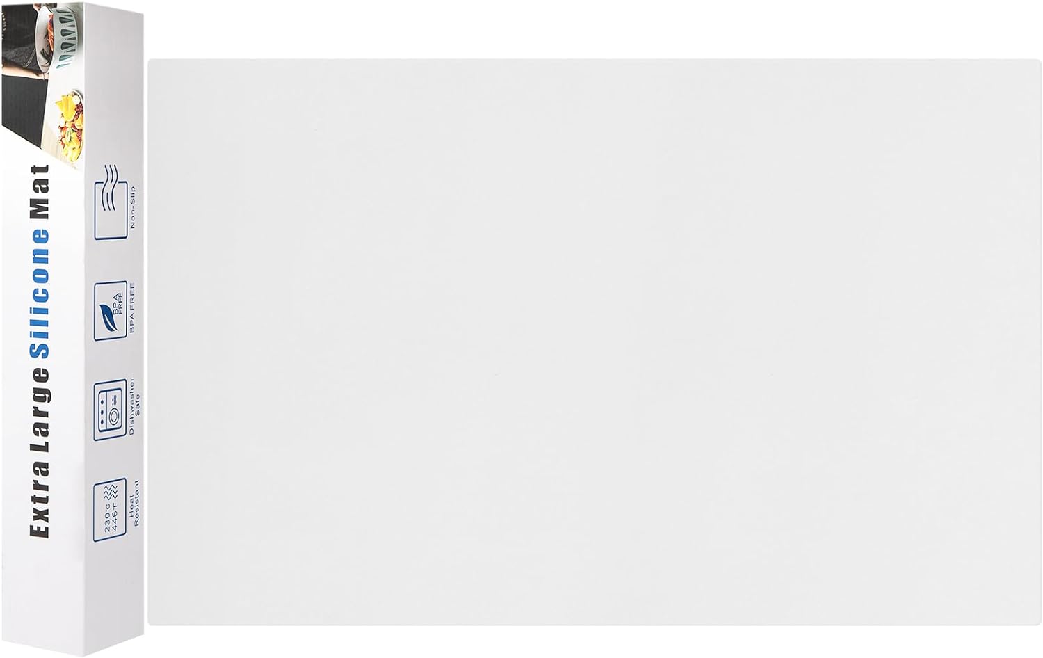 - Extra large silicone mat: Size of 24” x 16”, it can be placed under the air fryer, microwave, toaster oven, induction stove, coffee maker to protect the kitchen countertops and other surfaces against spills, scratches, grease, heat, etc.And it also reduces the noise of the appliance when running.