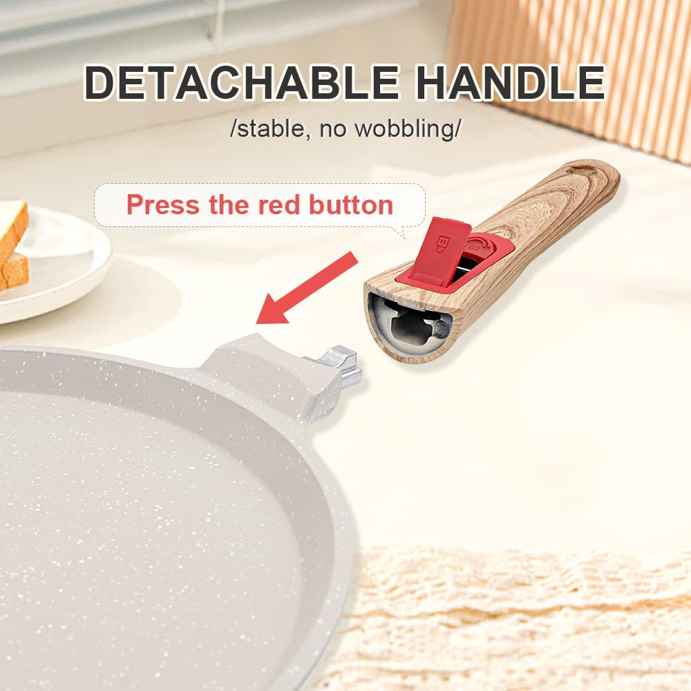 Non Stick Crepe Pan with Detachable Handle, 10 Inch Cast Aluminium Dosa Tawa Tortilla Pan, Pancake Pan Induction Compatible - White