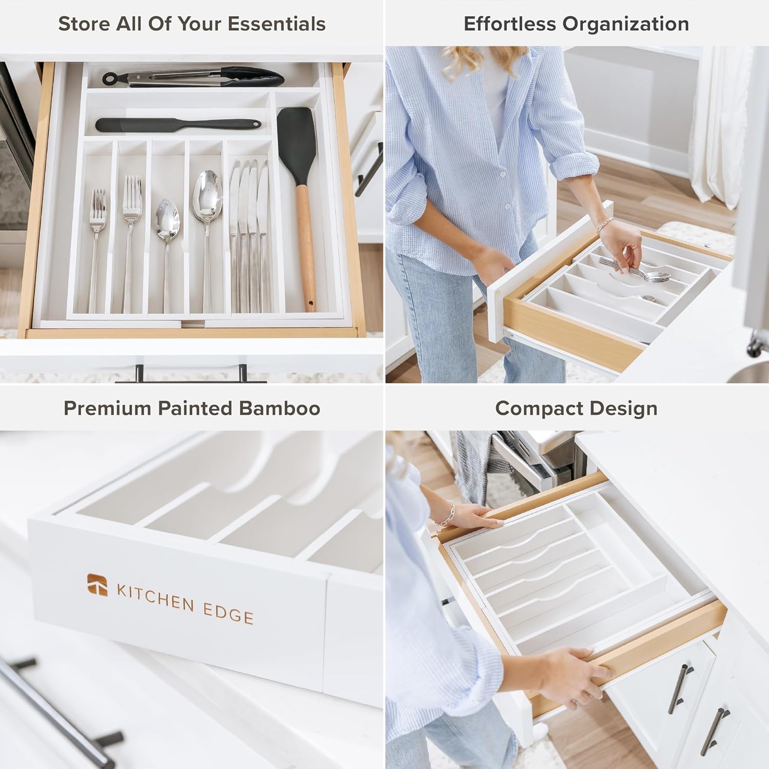 - INNOVATION AND QUALITY AT ITS FINEST. KitchenEdge bamboo kitchen drawer organizers are #1 in innovation and quality. Every organizer in our portfolio offers a unique combination of design and quality features no other bamboo organizer manufacturer can match. All of our organizers are manufactured on the same production line with the same ultra-premium quality specifications, offering you a consistent look and feel no matter how many drawers you organize in your kitchen with KitchenEdge.