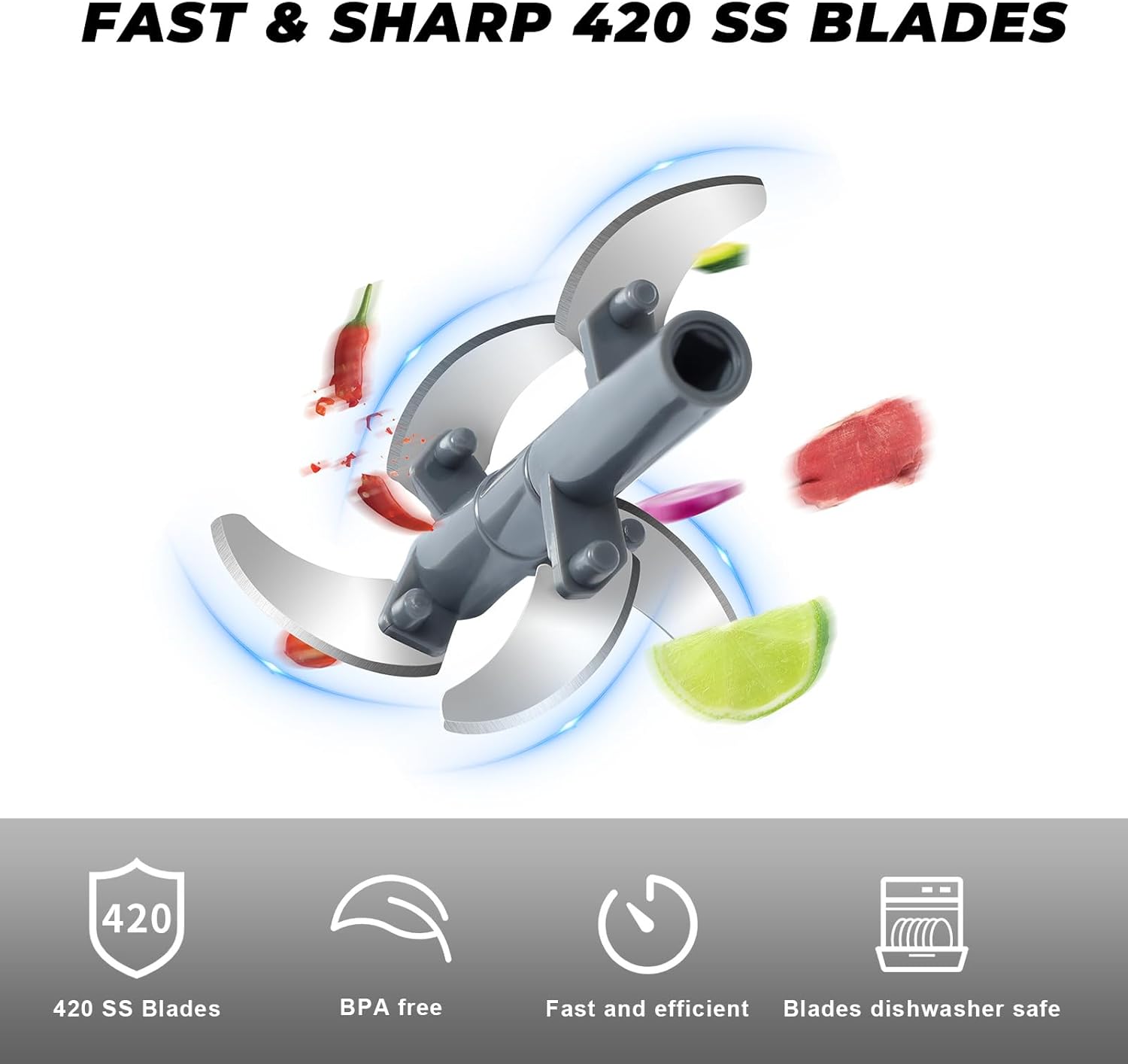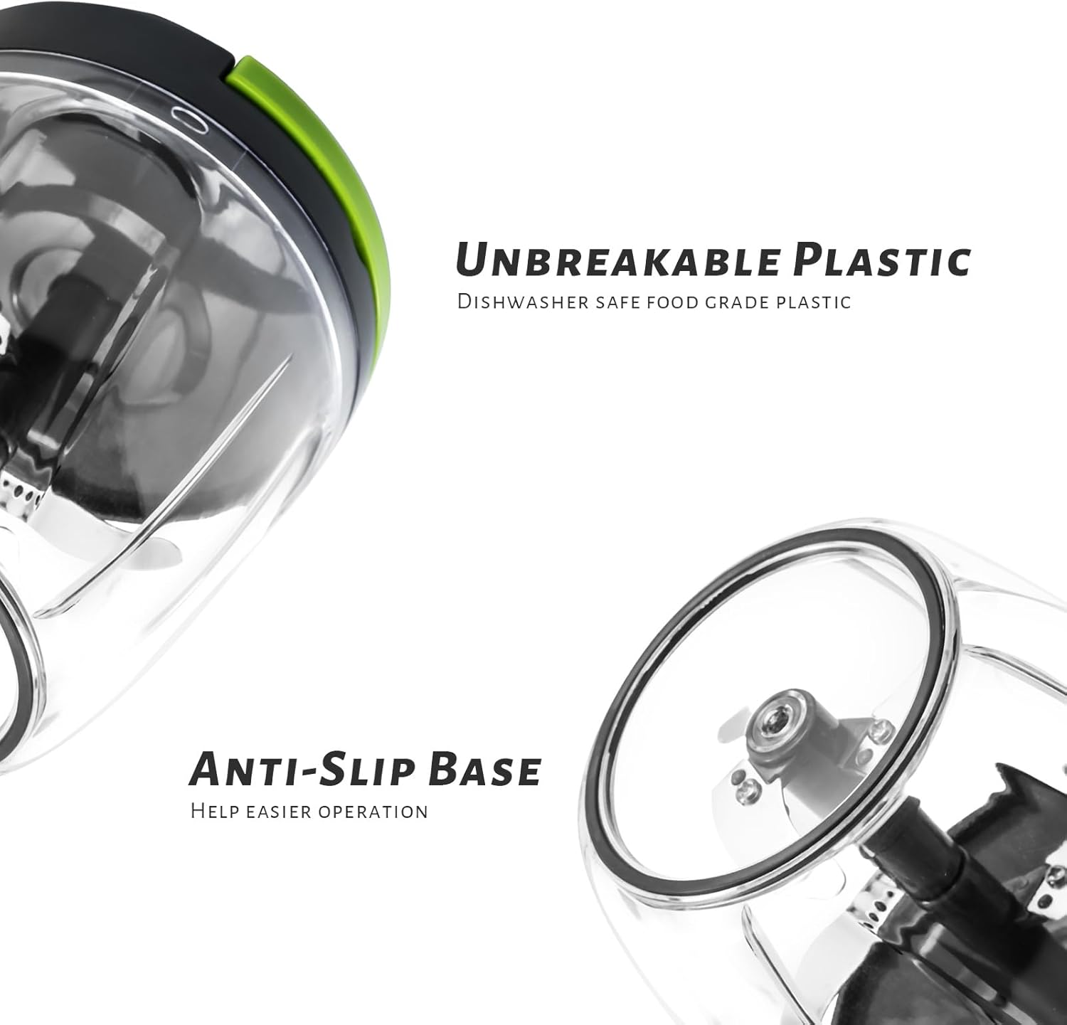 - Soft-grip Lid & Anti-skid Base - To ensure ultra-comfort, this chopper vegetable cutter has a soft-grip lid, an anti-skid base. The non-skid ring on the bottom keeps the cup from sliding around while the spinning blades chop finely or coarsely.