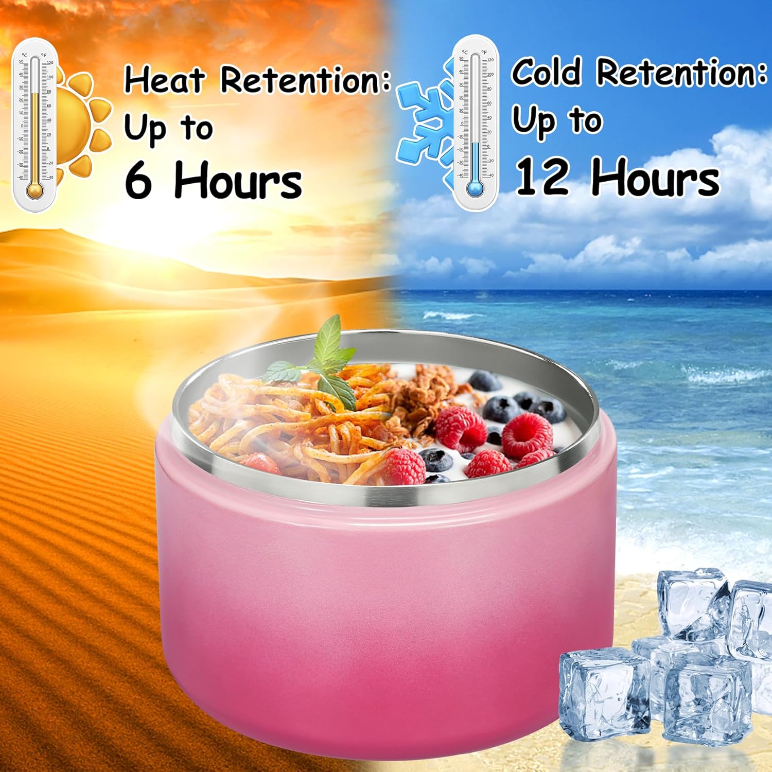 12oz Insulated Vacuum Food Jar with Buckle Lid Wide Mouth Soup Thermo for Hot Food Kids Leakproof Stainless Steel Lunch Container (Gradient Pink, 12OZ)
