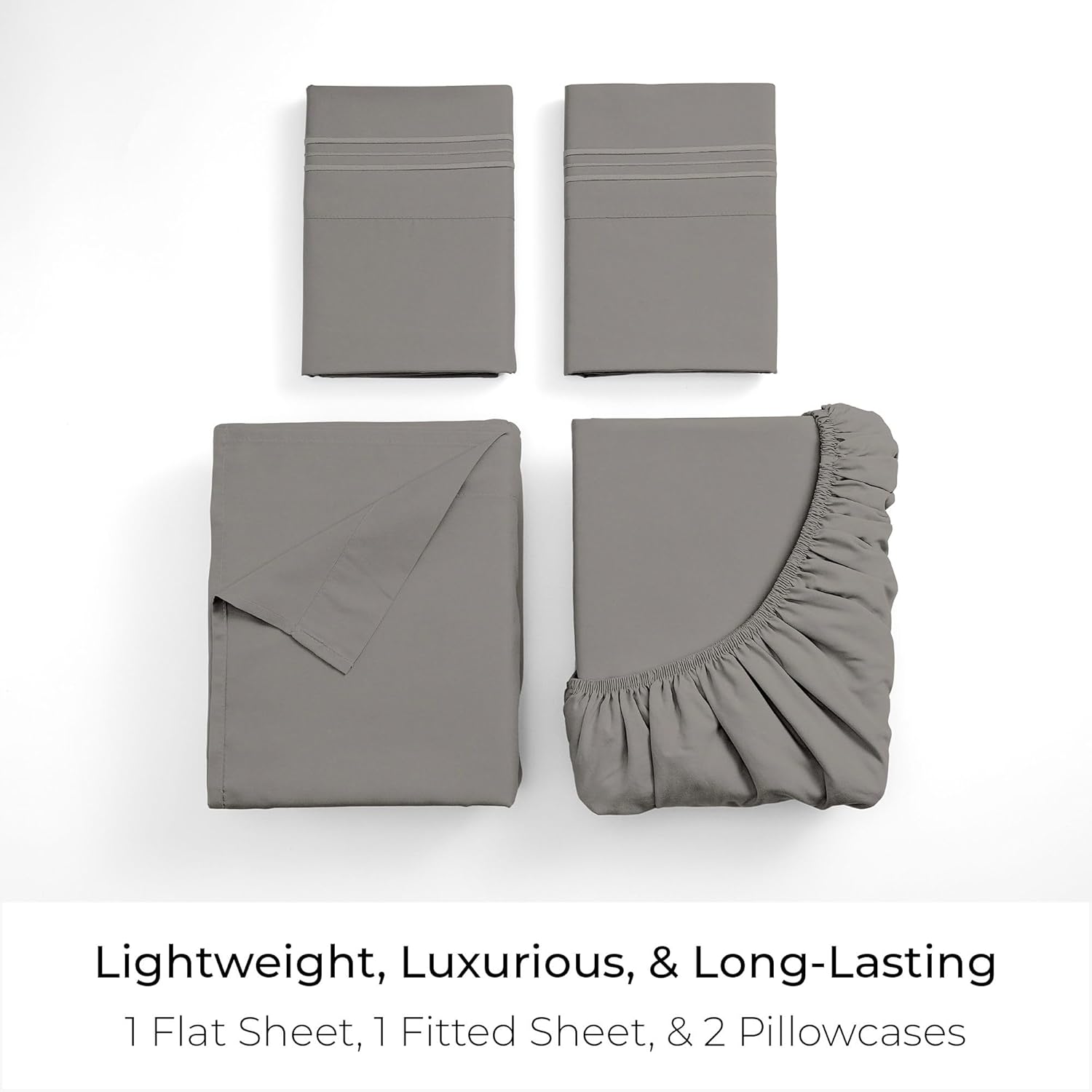 - Complete 4-Piece King Bedding Set - Includes 1 Fitted Sheet (78"x80"x16"), 1 Flat Sheet (102"x105"), & 2 Pillowcases (20"x40") - all crafted from double-brushed microfiber for an ultra-soft feel. Temperature-regulating to keep you cozy in winter and cool in summer.