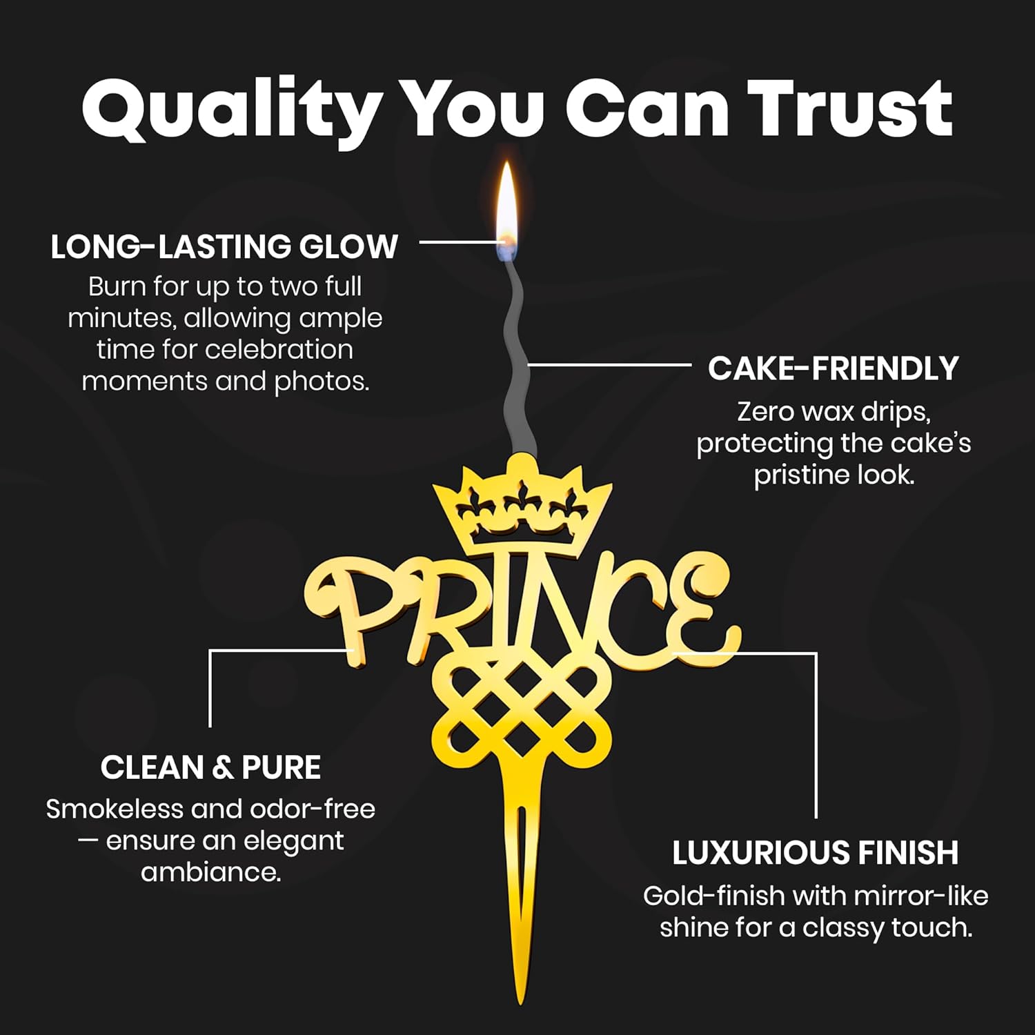 Prince Reusable Gold Romantic Cake Candle - Luxury Cake Topper Candle for Birthdays, Weddings & Anniversaries - Reusable Food Safe Acrylic, Shiny Mirror Finish - Happy Birthday Cake Topper Decor