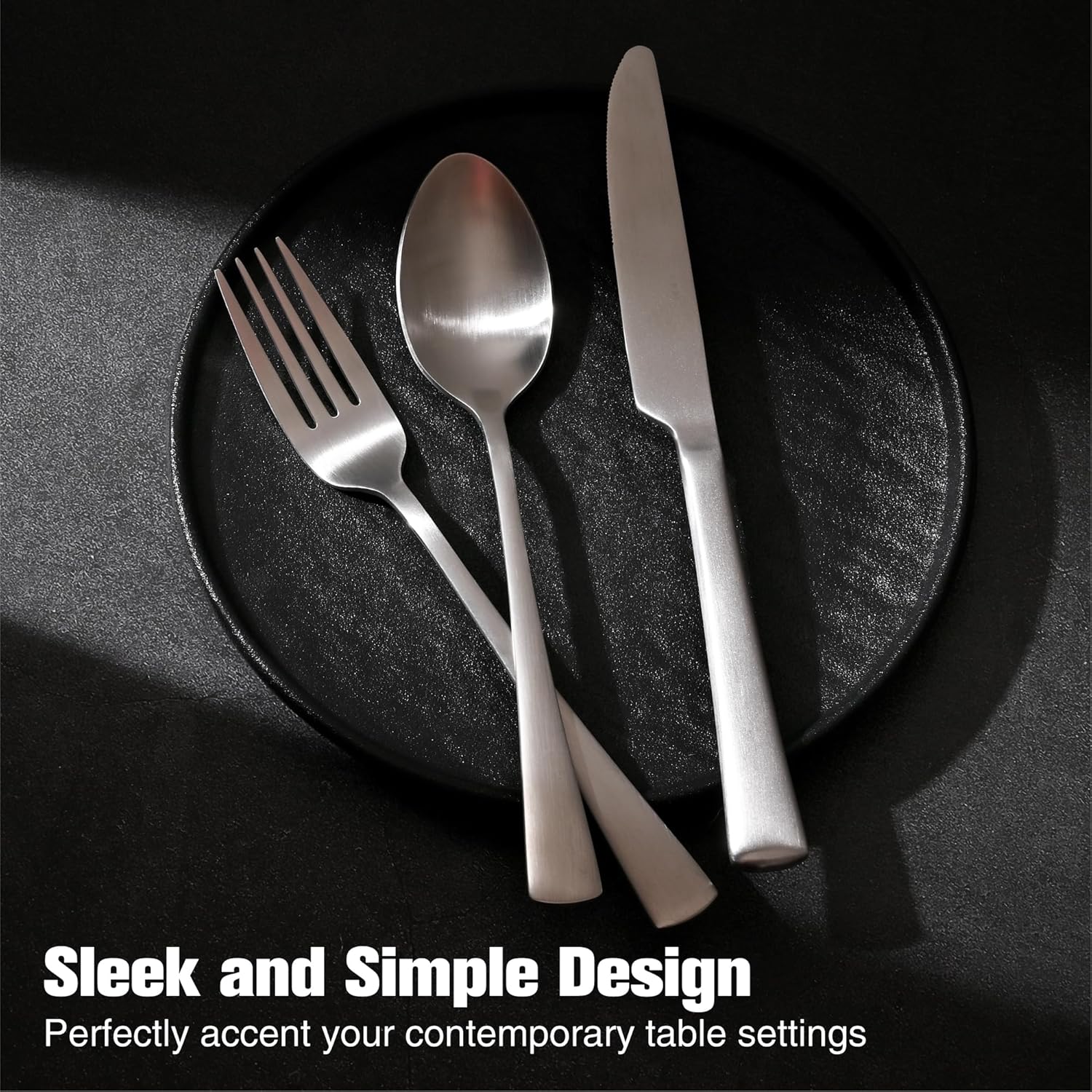 KINGSTONE Silverware Set for 8, 40-Piece 18/10 Stainless Steel Flatware Set,Forged Cutlery Set Matte Satin Finish, Dishwasher Safe