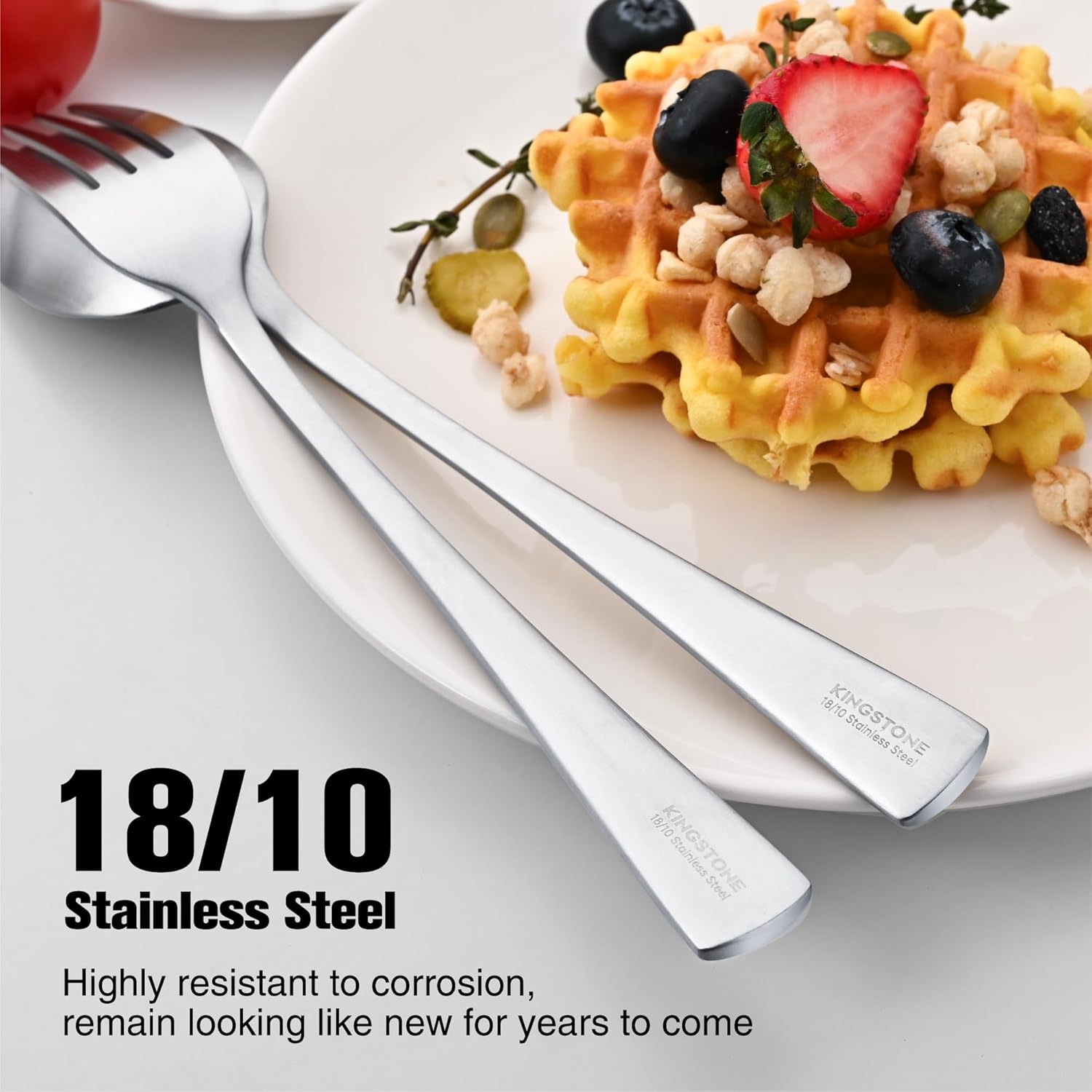 - Sleek and Modern - KINGSTONE stainless steel cutlery set features sleek lines and contemporary sihouette, simple and elegant design, will fit into any kitchen. The slightly thicker handle, making it easier to hold on to, allowing you to enjoy a seamless dining experience with every use.