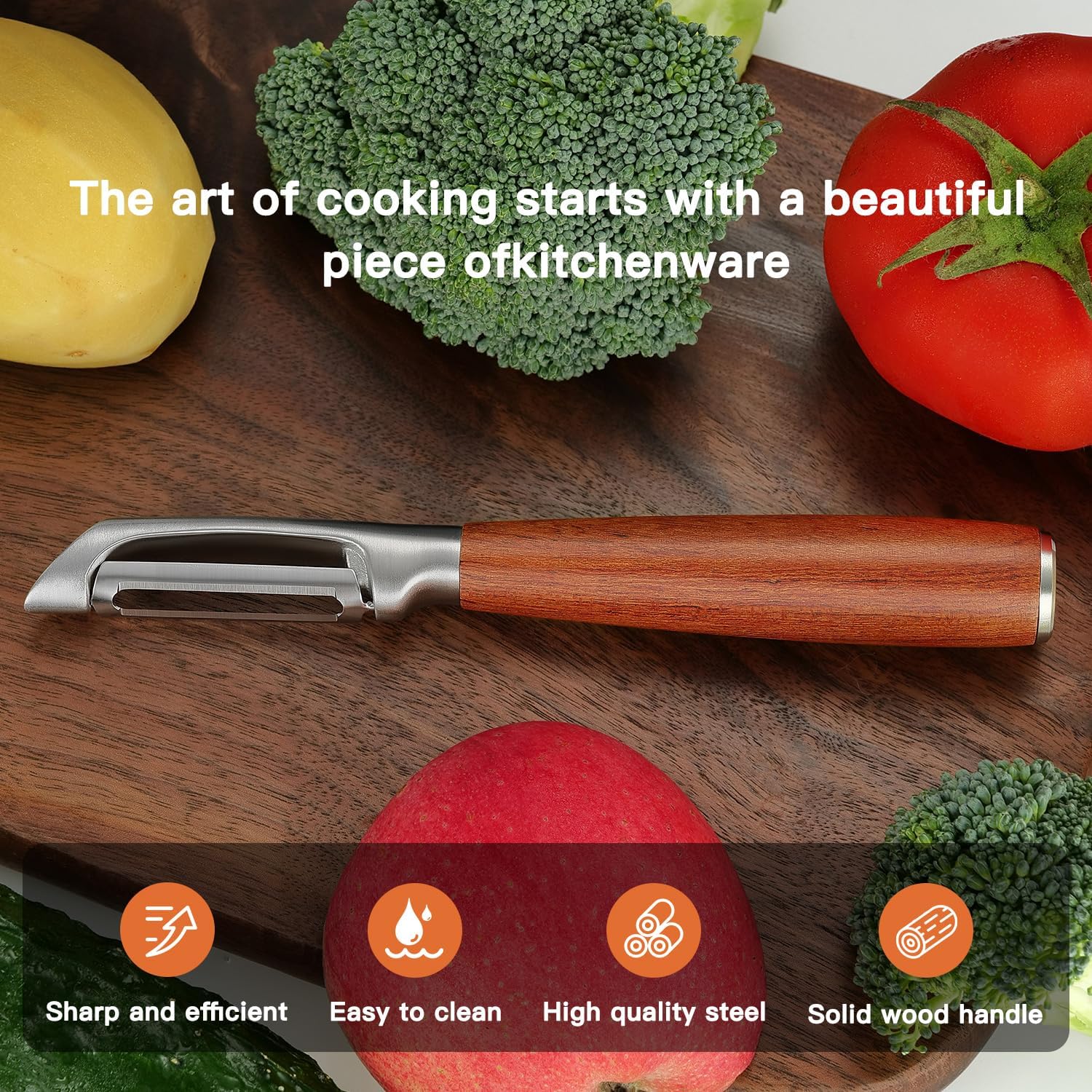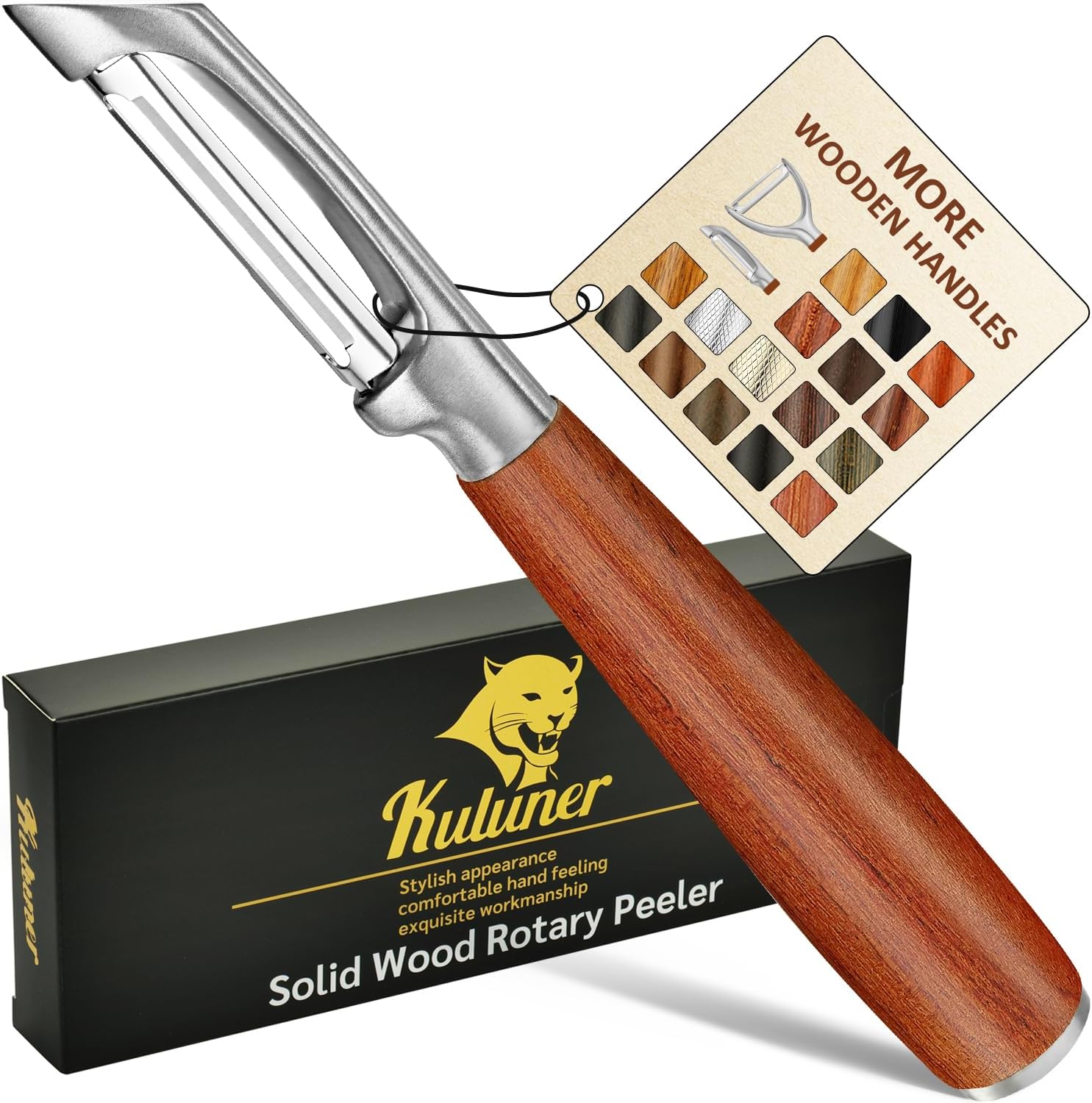 KU LUNER Premium 304 Stainless Steel Multifunctional Kitchen Fruit and Vegetable Peeler with Real Wood Handle,Ultra Sharp Strong Blade