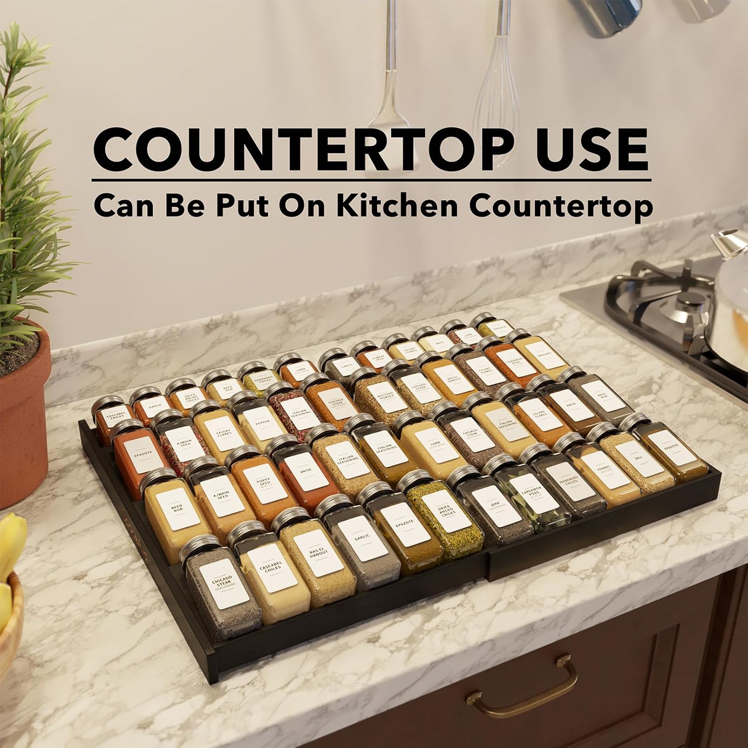 - STURDY CONSTRUCTION - The drawer spice rack is made of durable solid bamboo; Live an organized and sustainable life with this bamboo seasoning drawer organizer