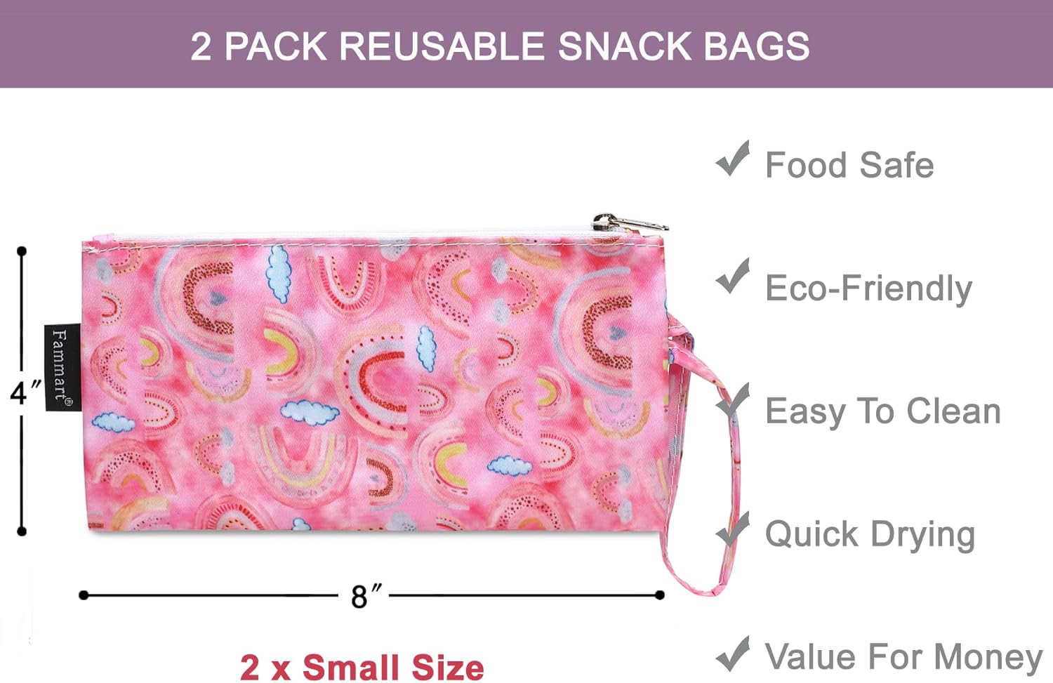 Reusable Sandwich Bag/Snack Bag for Kids & Adults, Dual Layer Lunch Bag with Handle, Washable, Food Safe, BPA Free (2-Pack, Rainbow)