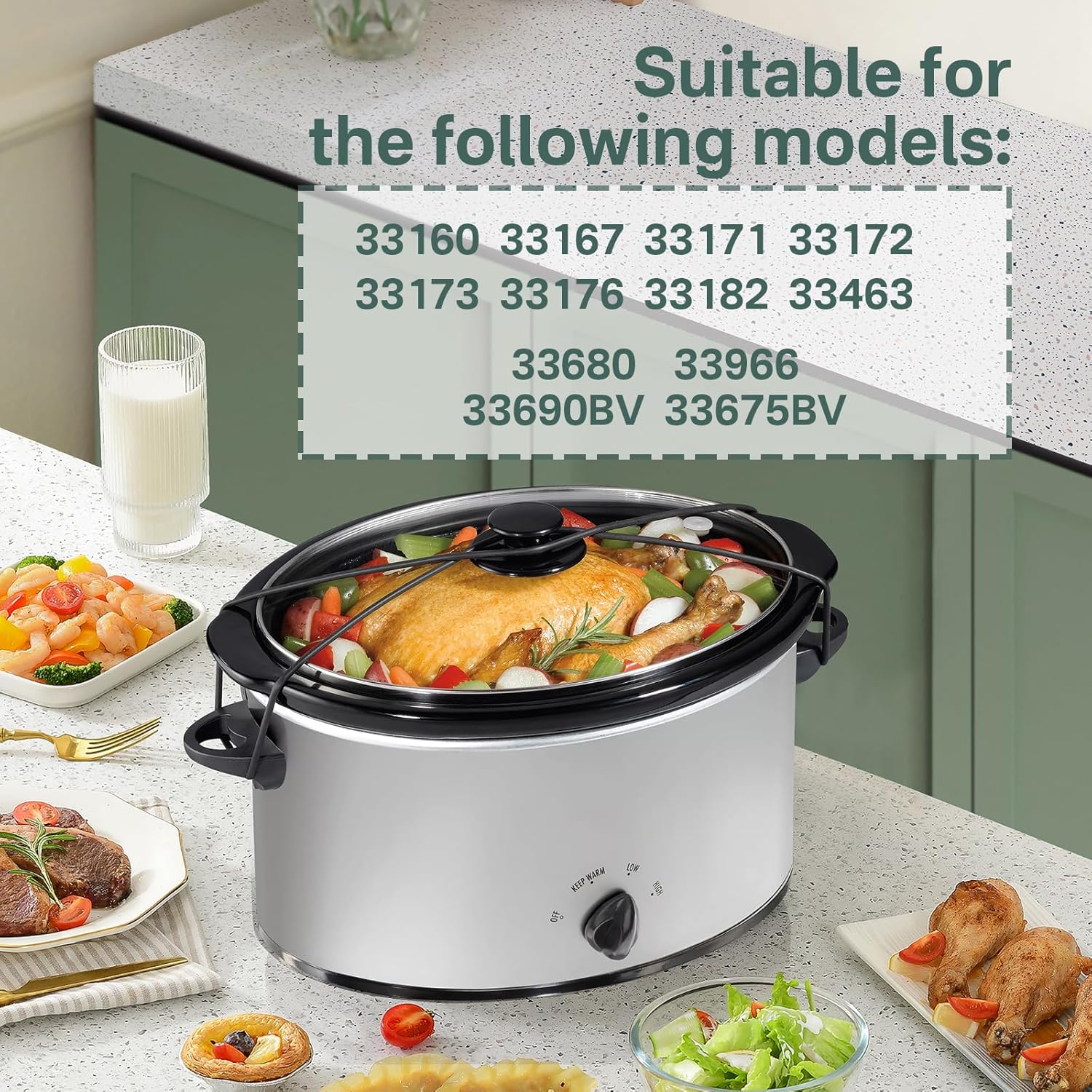 - Wide Compatibility: Designed to fit for 6, 7, and 8 quart Hamilton Beach slow cooker models, including popular models 33167, 33172, and 33176