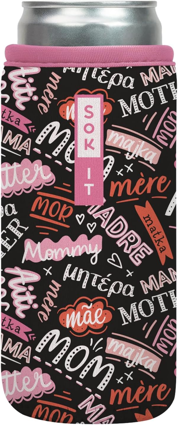 Sok It CanSok Sleeve for Beer & Soda Insulated Neoprene Cover (Mom Love, 12oz Slim Can Sleeve)