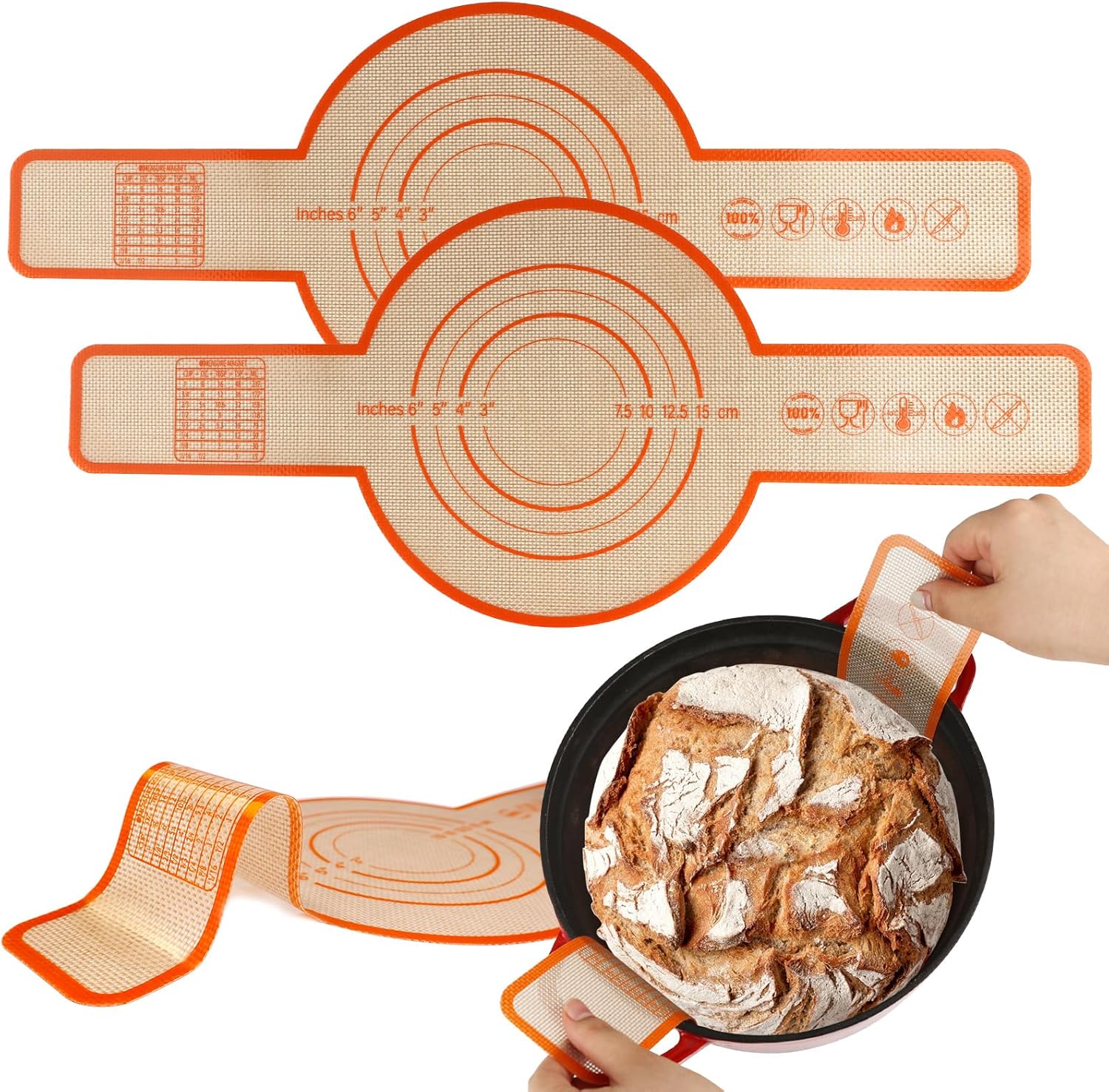 UBeesize 2 Pack Thickened Silicone Bread Sling, Reusable Sourdough Bread Baking Mat For Dutch Oven 2-8 Qrt, Non-Stick, Easy To Clean, With Extra Long Handles Bread Baking Sheet Liner.