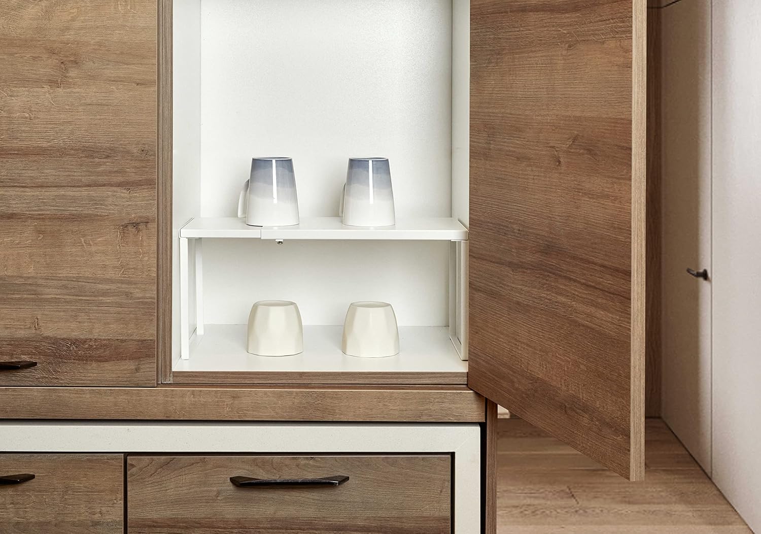 Nxconsu Cabinet Shelf Expandable Organizer Riser Rack for Kitchen Pantry Cupboard Under Sink Countertop Home Organization Extra Storage Space Saver Heavy Duty Metal Edgeless Design White Large