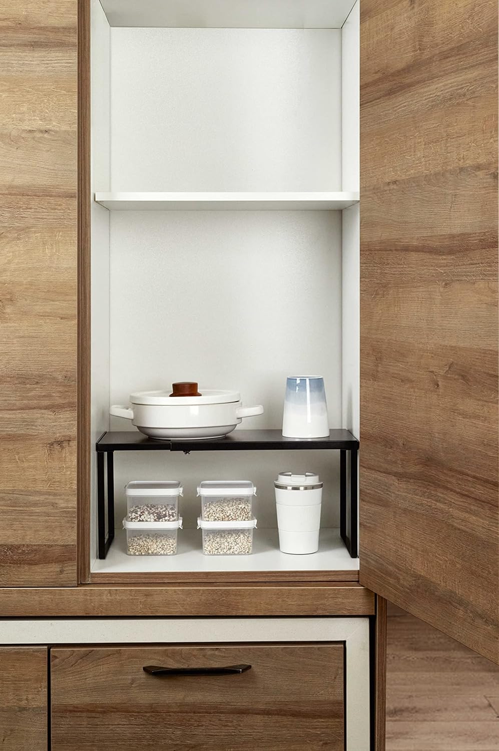 Nxconsu Cabinet Shelf Expandable Organizer Riser Rack for Kitchen Pantry Cupboard Under Sink Countertop Home Organization Extra Storage Space Saver Heavy Duty Metal Edgeless Design Black