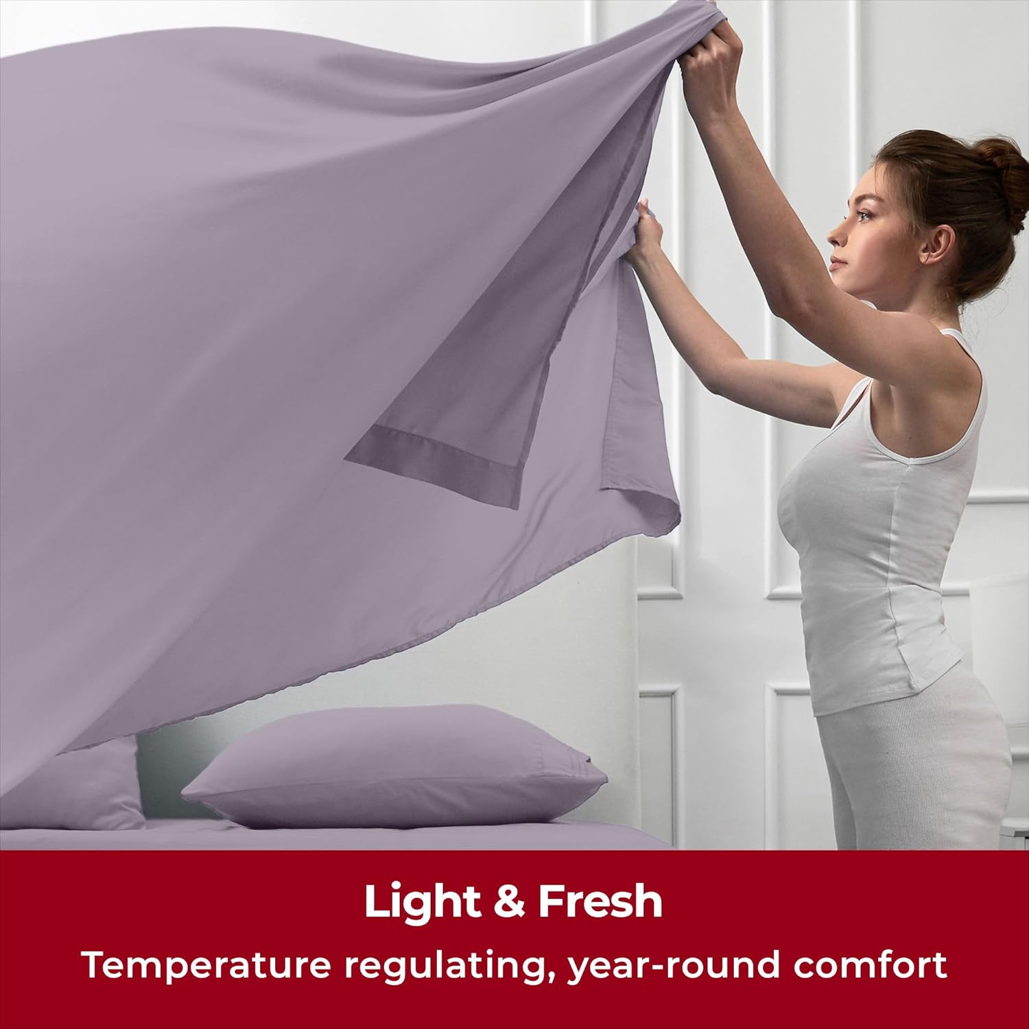 Mellanni Twin XL Sheets Set - 3 PC Iconic Collection Bedding - Hotel Luxury, Extra Soft, Cooling Bed Sheets - Wrinkle, Fade, Stain Resistant (Twin Extra Long, Hazy Lilac)