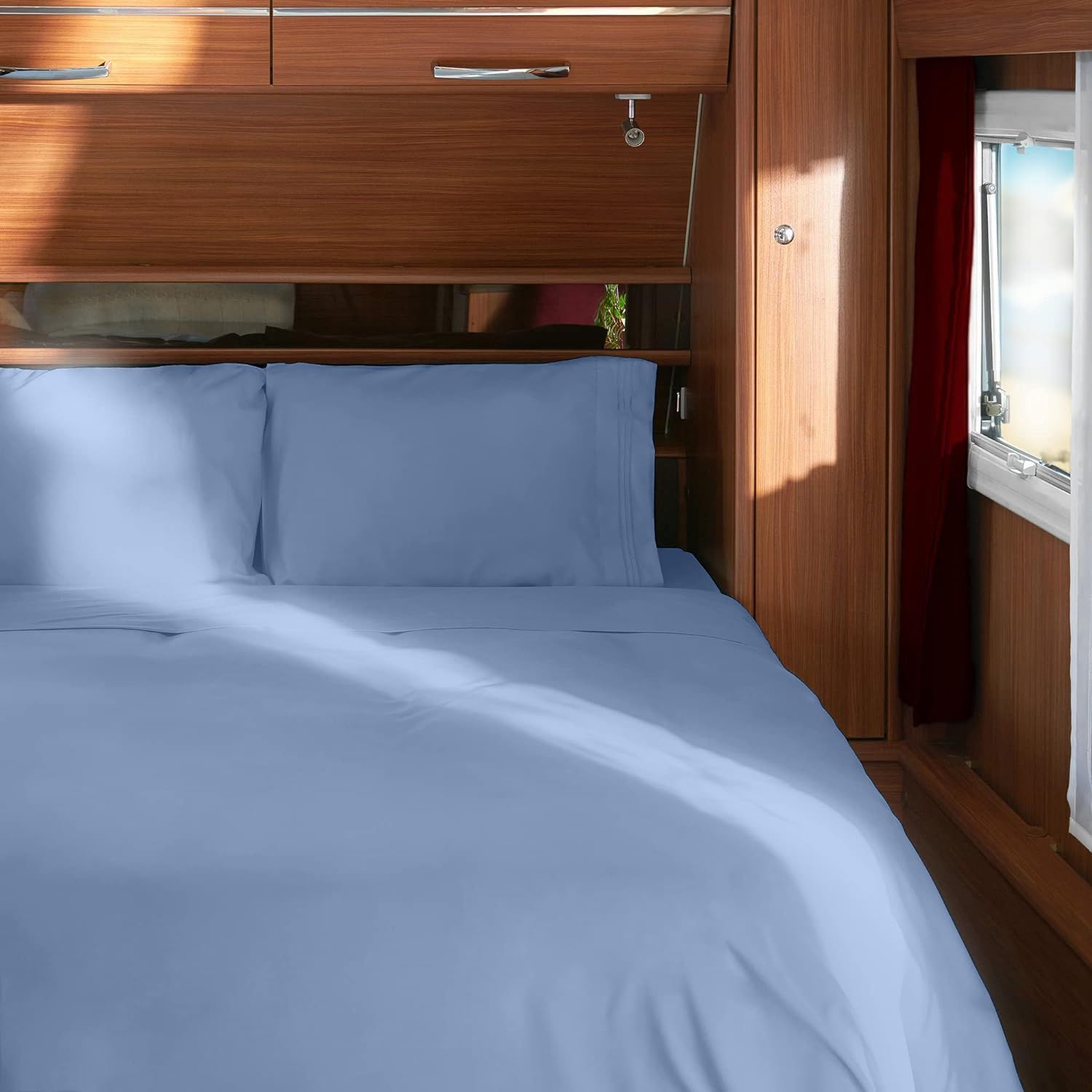 - Highest Quality Double Brushed Microfiber – is silky soft, durable, breathable, pet friendly and long-lasting. Enjoy same comfort on the road as you would in your home. Fabulous color selection will match any decor and Our RV sheets are perfect for your motorhome, camper and travel trailer.