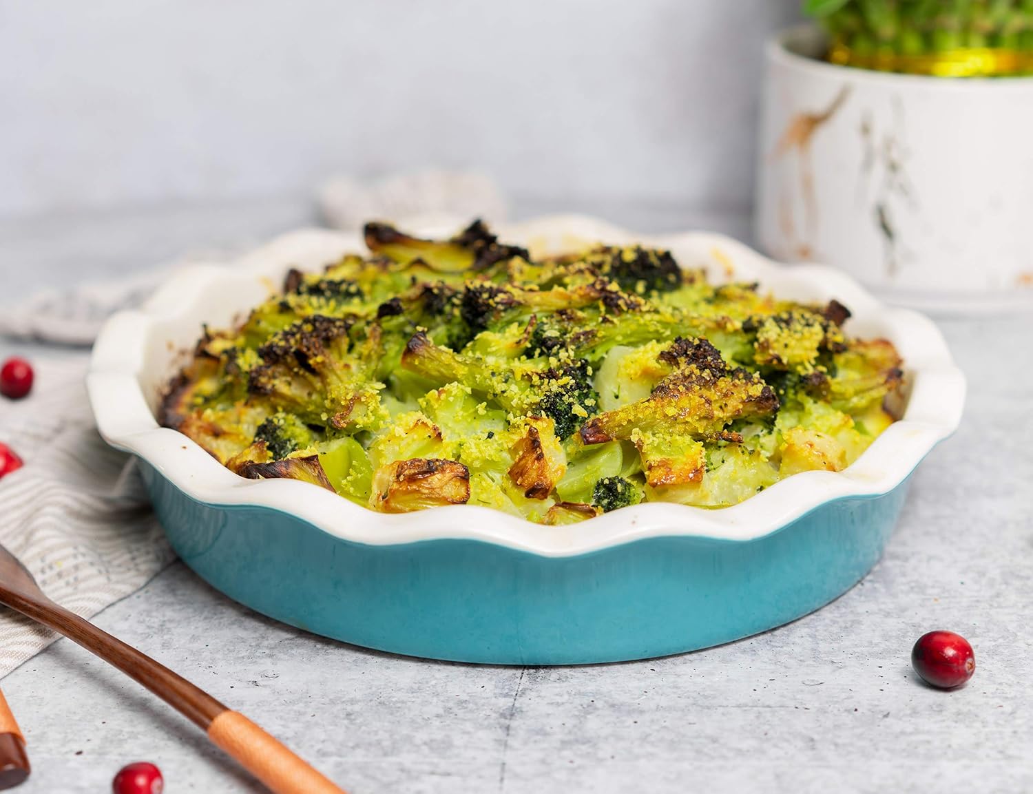 KooK Deep Dish Pie, Pecan Dessert Dish, Porcelain, Ceramic, Deep Dish Plate 10 Inch, Apple Pie, Ruffled Wave Edge, Reusable Round Pan, Oven and Dishwasher Safe, 44 Oz (Aqua)
