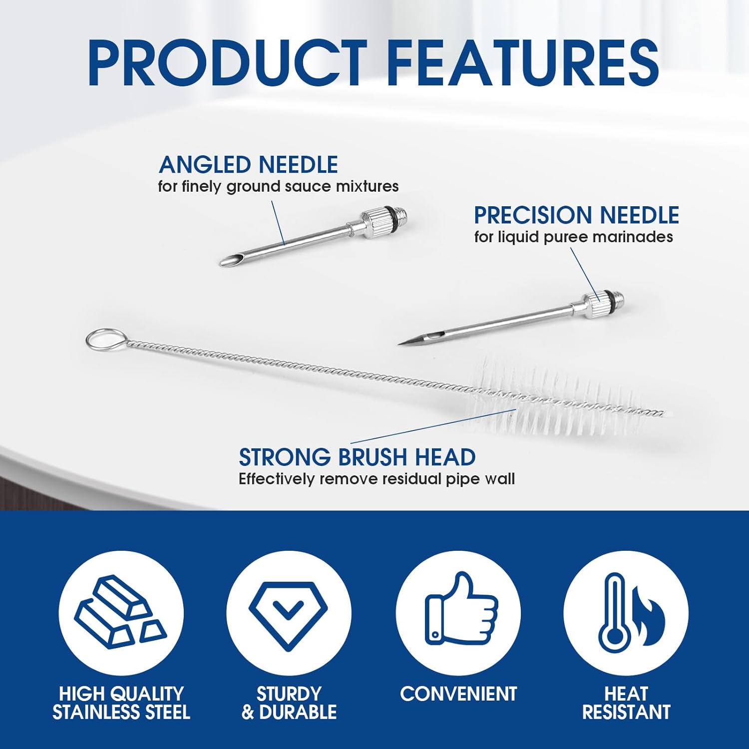 - Easy to Use: The turkey baster is easy to use and can be operated with one hand. The silicone suction bulb can be easily removed and cleaned, and the stainless steel needle can be washed with water.