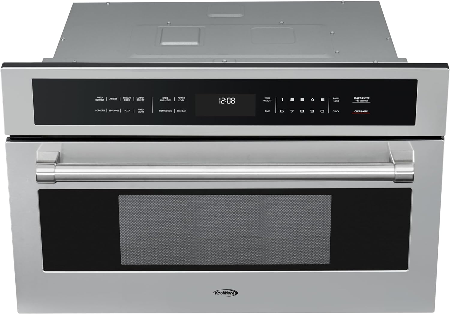 KoolMore KM-CWO30-SS Built-in Microwave with Convection Oven and Air Fryer, 1000W Power with 10 Levels, UL Listed Capacity in Stainless-Steel, 30 in/1.6 cu. ft, Silver
