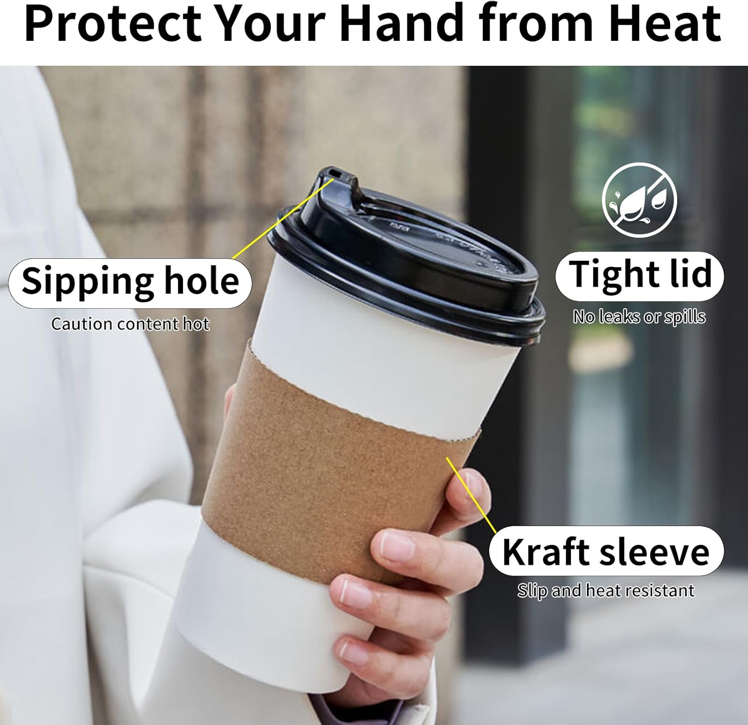 - Leak-Proof Lid: Equipped with a specially designed lid, these cups offer superior sealing and leak protection for your drinks. The cup includes a rolled rim for comfortable, leak-proof drinking and poly-coated lining reduces condensation accumulation, ensuring that not a single drop of your precious coffee goes to waste