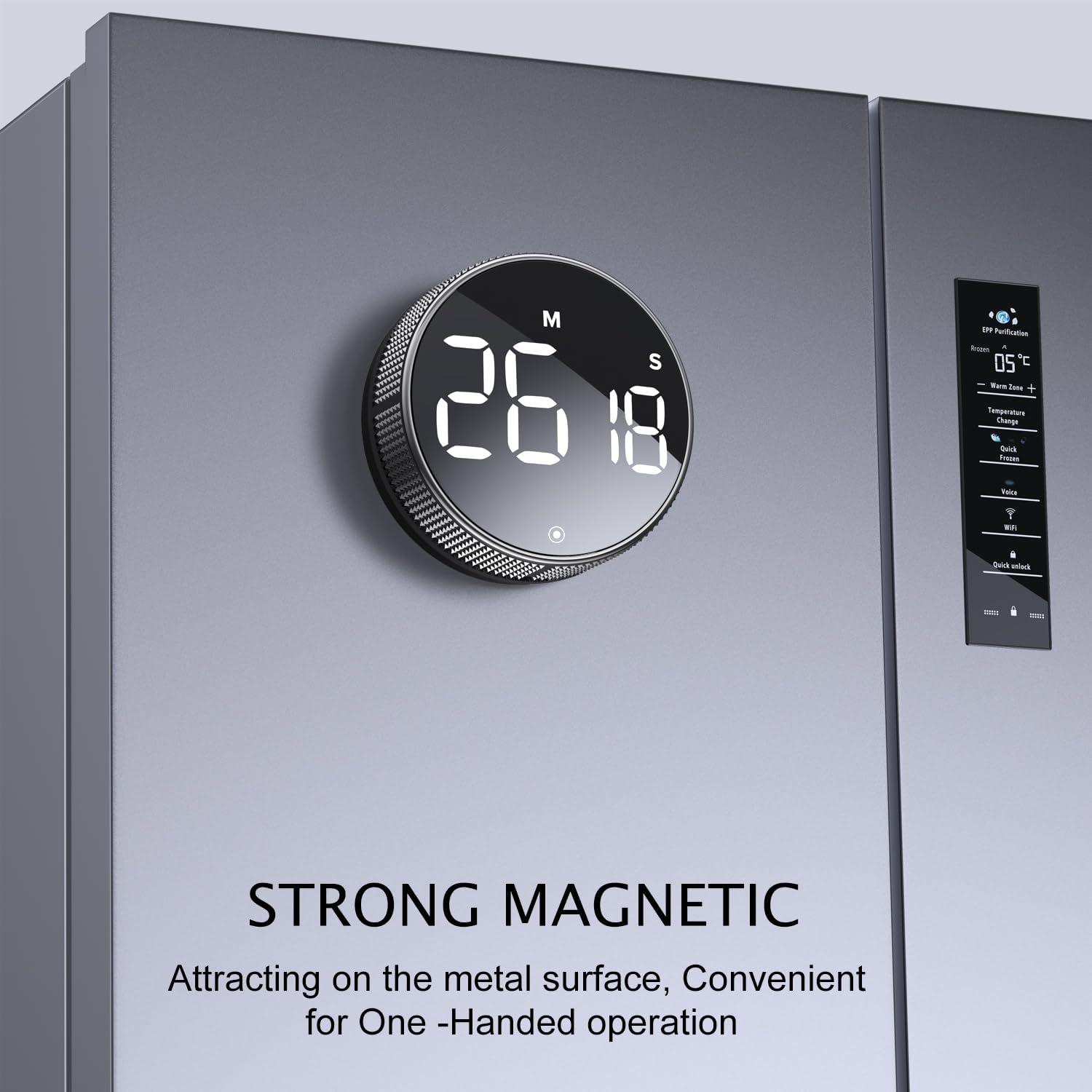 - Countdown and Countup timer: According to your different needs to setting timer as the countdown or countup timer, the range of digital from 00:00 to 99:55, the time increases or decreases at the minimum 5 seconds when you adjust the digital. The back of the timer with strong magnets, which can be adsorbed metal materials of the gym, firmly and no-slipping, you can one-hand operation operation.