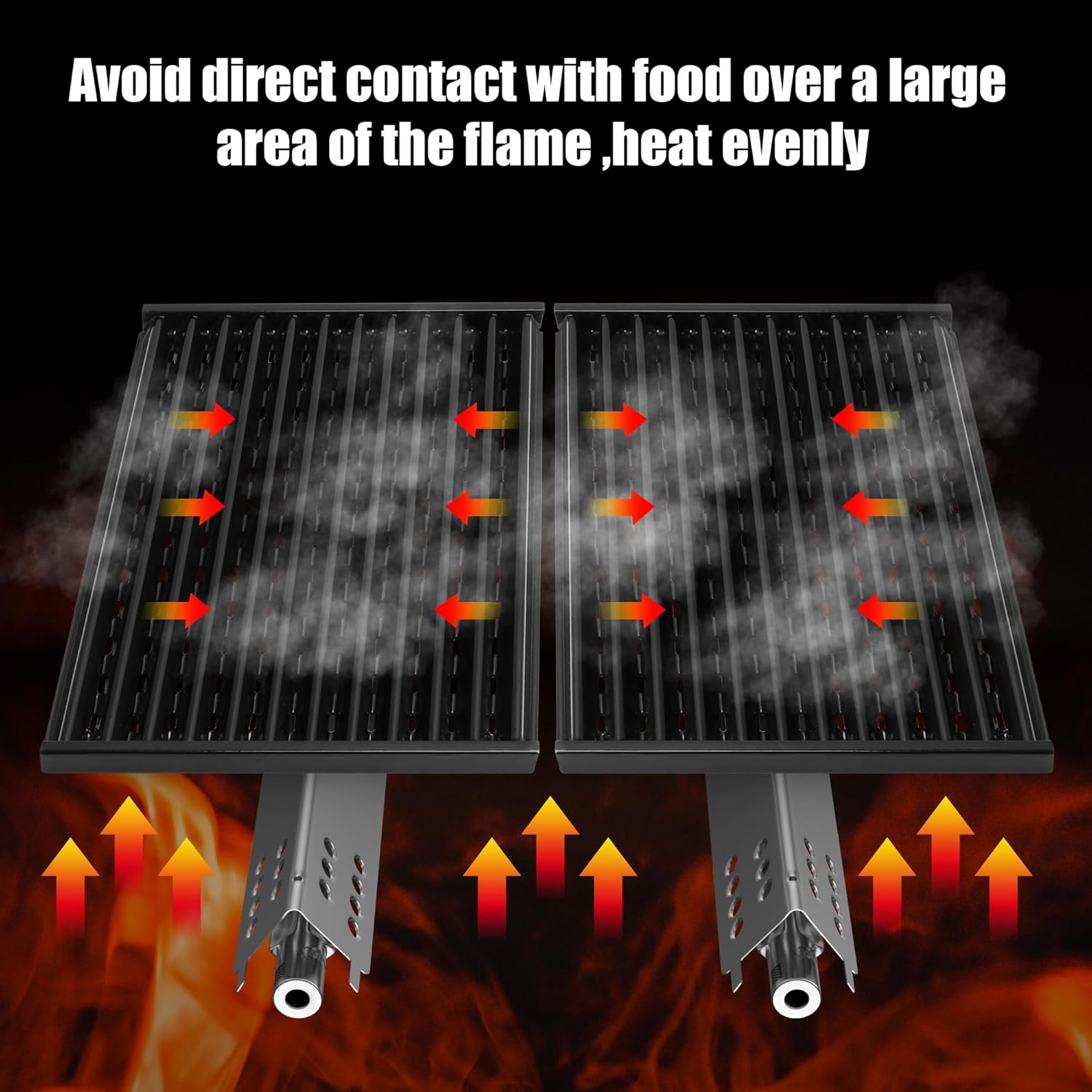 - 【Durable Materials】Our emitter plates made of porcelain steel,heat evenly and retain heat superbly,Provides professional grilling results that leave visible grill marks on meat/vegetables;stainless steel heat tent, and grill burner tubes, providing excellent heat distribution and long-lasting performance for your grill.
