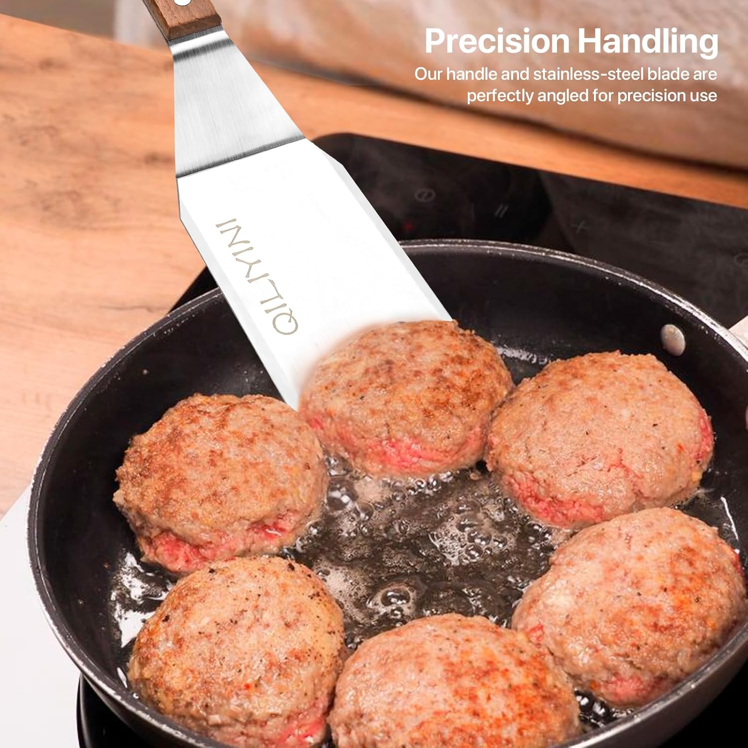 - QILIYINI’S SIGNATURE SPATULA – Protect your cookware with our professional grade stainless steel spatula. Perfect for cast iron griddles, BBQs, and flat top grills