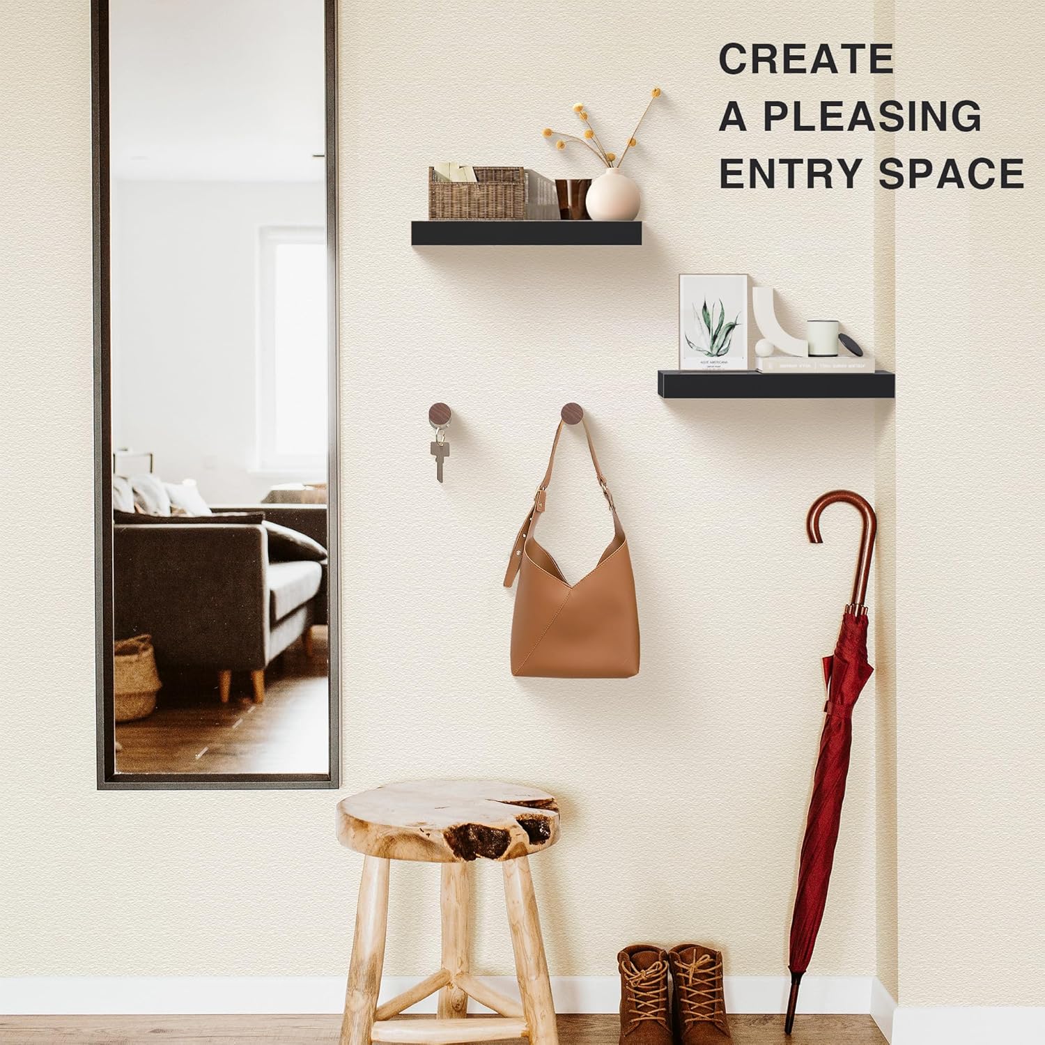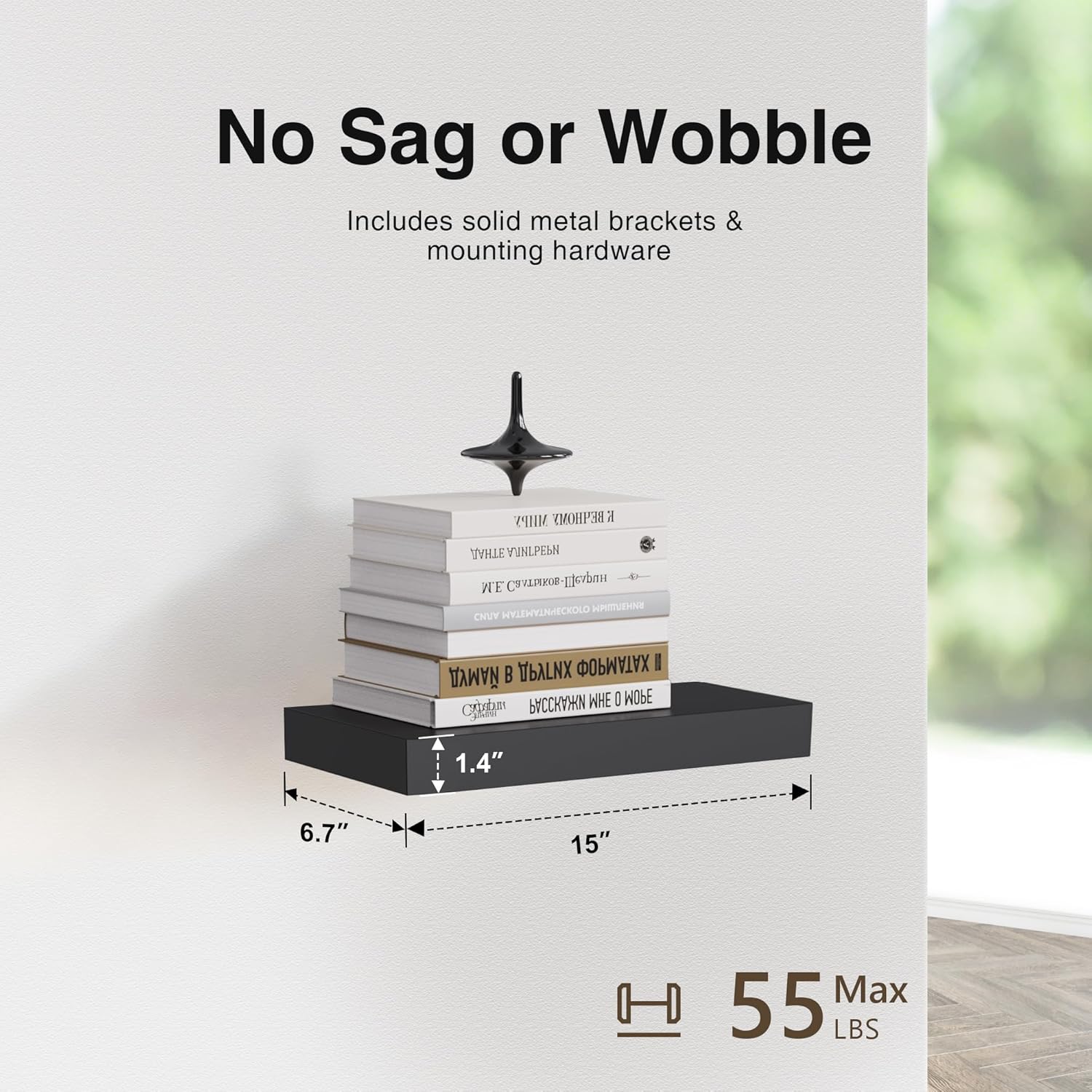 - VERSATILE AND STYLISH DESIGN: Elevate your space with our wall shelves available in wood, black, and white. These floating shelves come in three sizes (15 inches, 24 inches, and 36 inches) and feature a natural wood texture that blends seamlessly with any decor style.