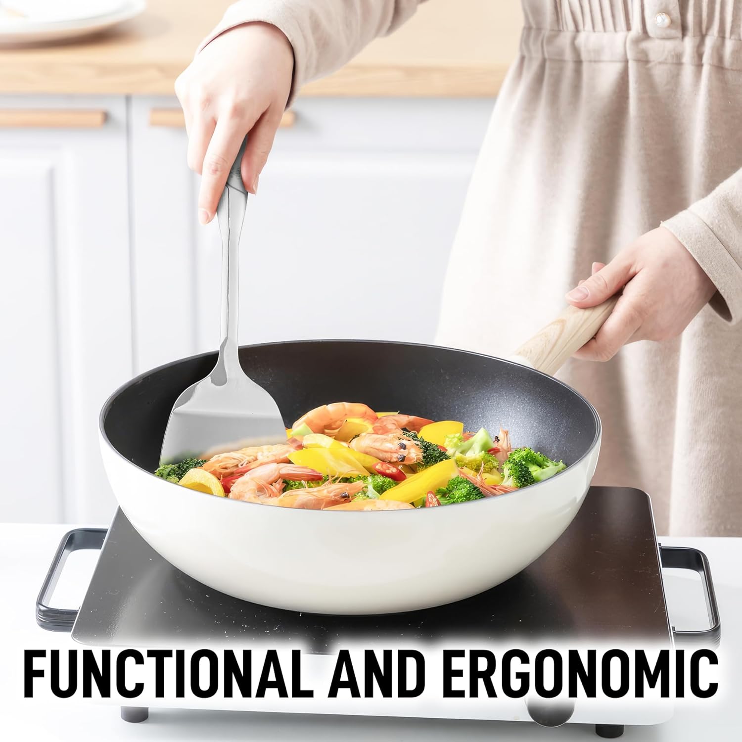 Zulay Kitchen Premium Stainless Steel Metal Spatula - Cooking Spoon Turner - Durable Cooking Utensil with Ergonomic, Easy to Use Handle - Easy to Clean, Perfect for at Home Cooks & Chefs - 15”