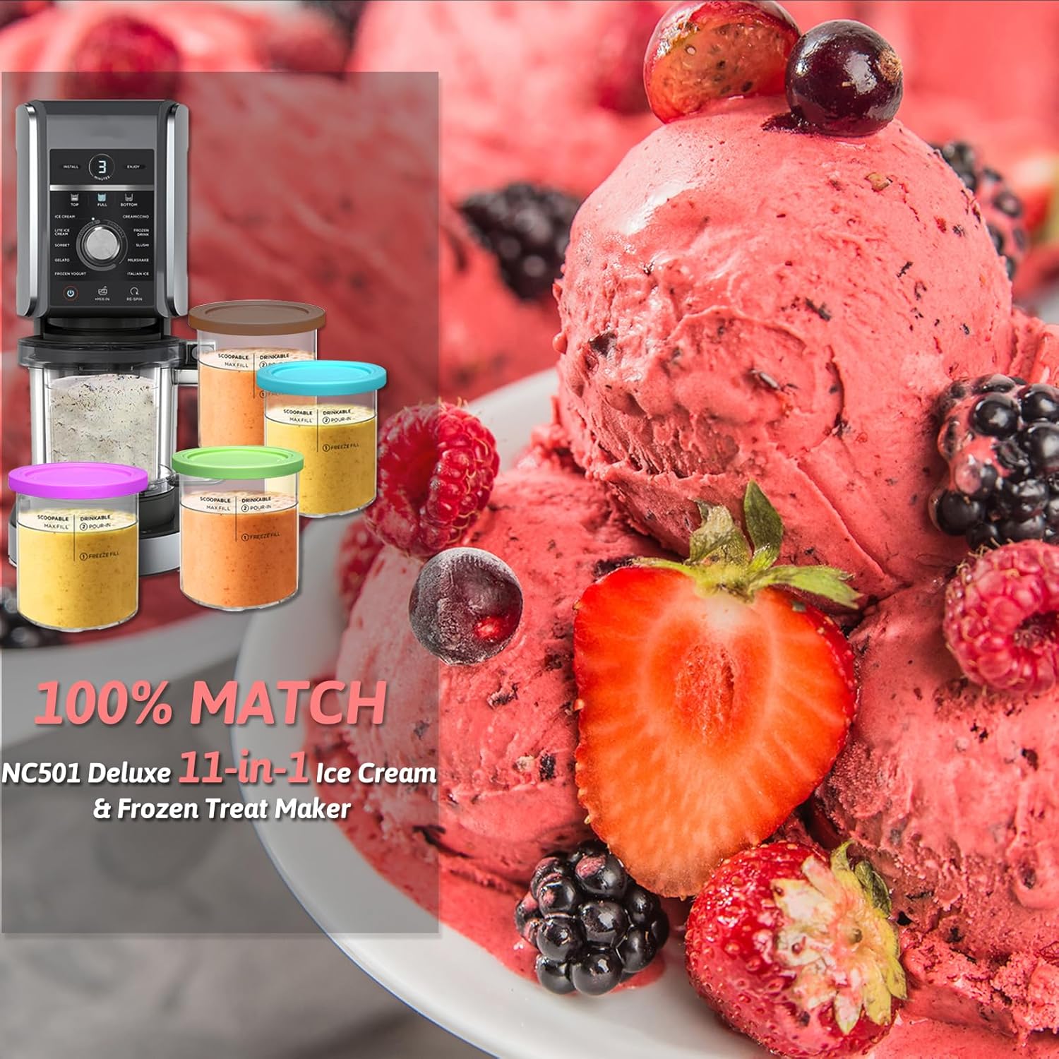 - [4 PINTS CONTAINERS AND LIDS]:Compatible with Ninja Creami slushie machine NC500 series Deluxe ice cream makers.you having the extra 4 pints containers is very convience. Cause you can creat more intersting and yammy frozen treats for you family or friends.