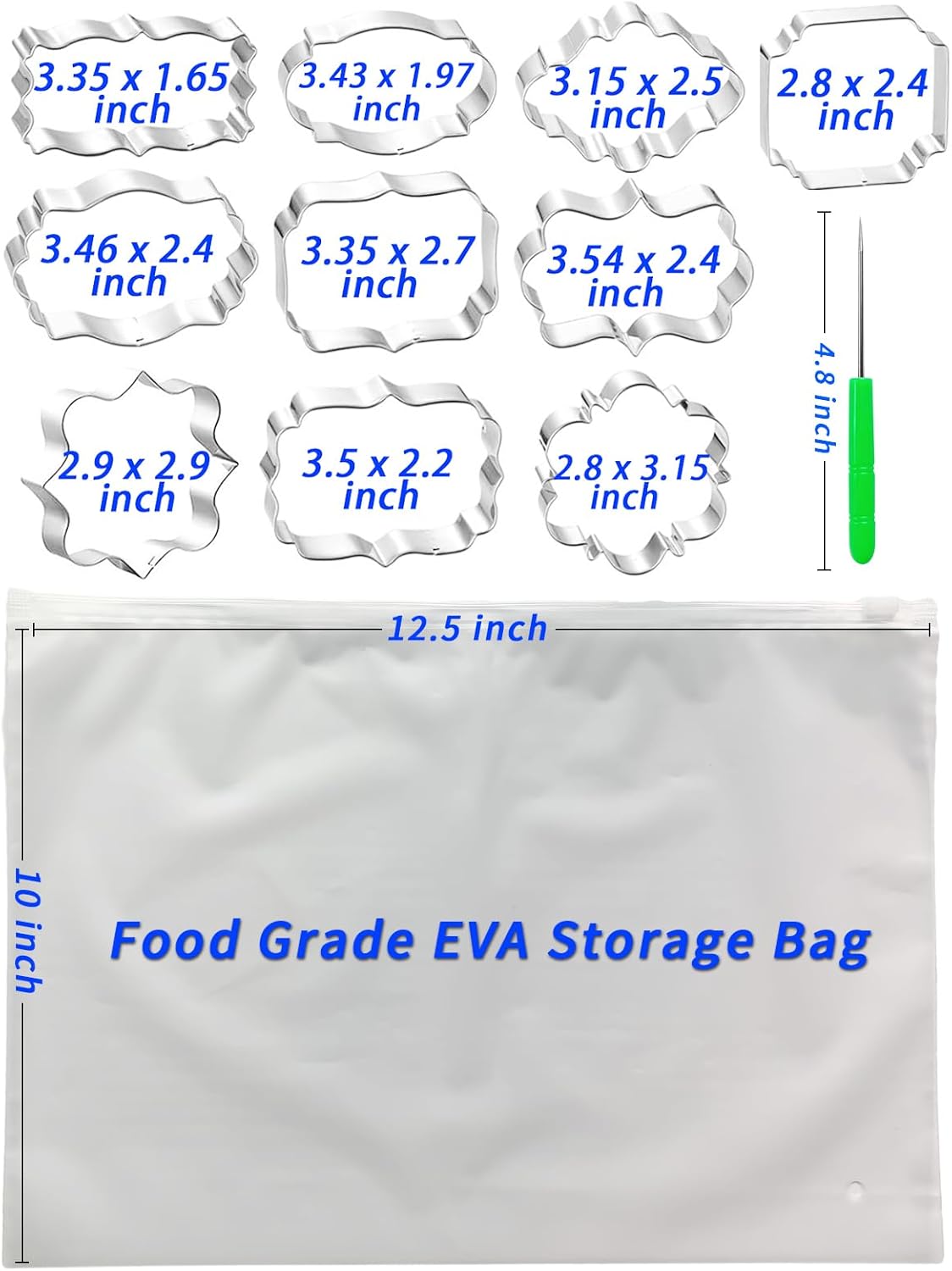 Frame Cookie Cutters 10 Shapes with 6 Cookie Scribes & 1 Storage Bag, Plaque Fondant Dough Cutters Baking Tools Kitchen Accessories for Home Daily Holiday Party