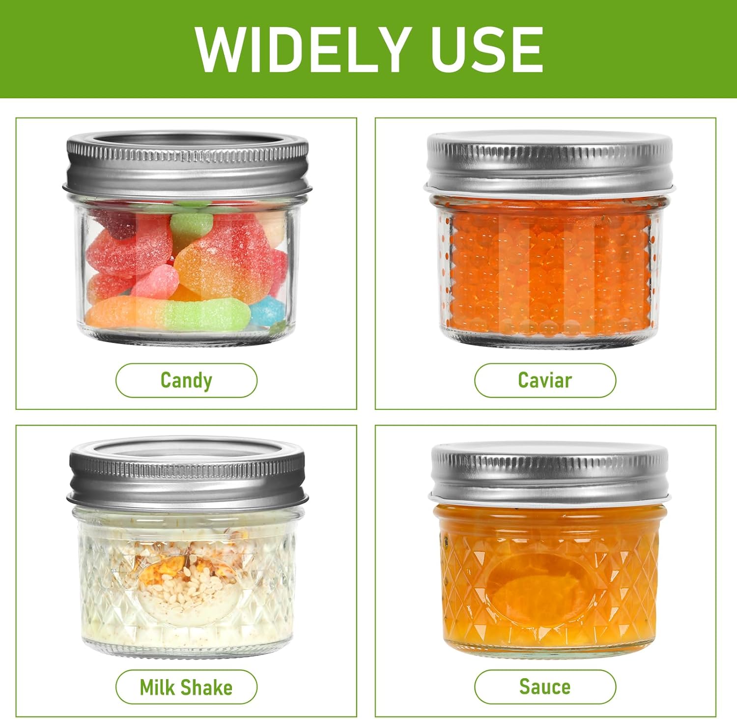 - DISHWASHER SAFE: The small mason jars 4 oz is dishwasher safe and regulat mouth allows your fingers easy accessibility to the bottom of the glass jars. Easy to fill and clean.