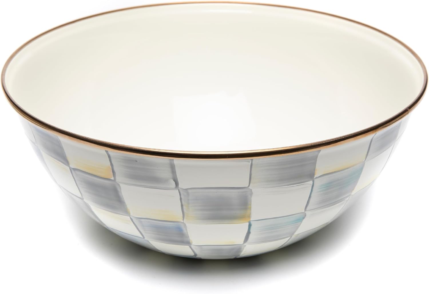 - ELEGANT ESSENTIAL: Elevate any meal with this decorative bowl. It has a hand-glazed heavy-gauge steel underbody and a bronzed stainless-steel rim and is decorated with hand-painted gray-and-white checks.