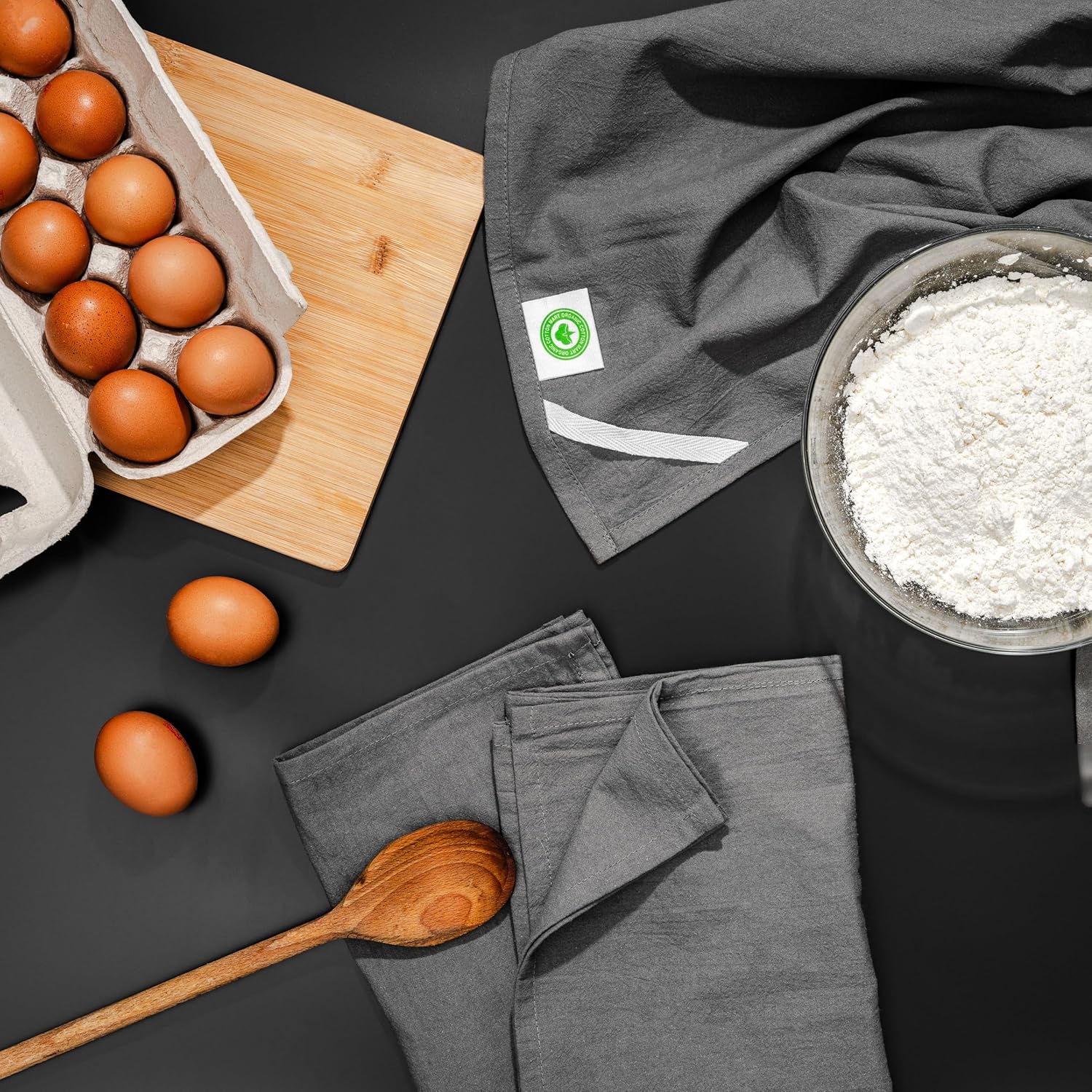 - Organic Gray Flour Sack Kitchen Towels - These gray flour sack kitchen towels are made with Certified Organic Cotton. You can safely use them for covering food, baking bread, as kitchen towels, for cleaning, and a variety of other purposes. These flour sack towels are perfectly hemmed on all four sides and made of high-quality cotton so you can wash and reuse them thousands of times without having to worry about wear and tear.
