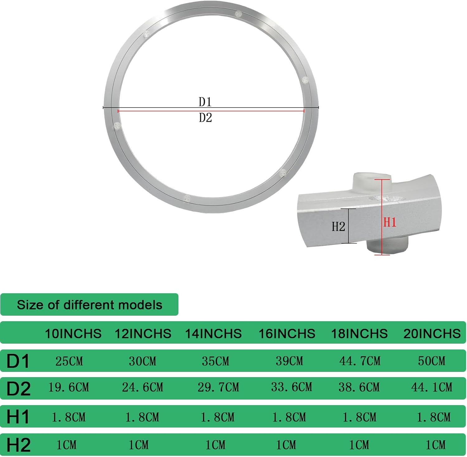 - ✅【OFFERING a VARIETY of SIZES】our non-Slip heavy duty aluminum turntable ball bearings offer you a variety of sizes: 10inch,12 inch, 14 inch, 16 inch, 18 inch, 20 inch. Please see our pictures for our swivel bearings.