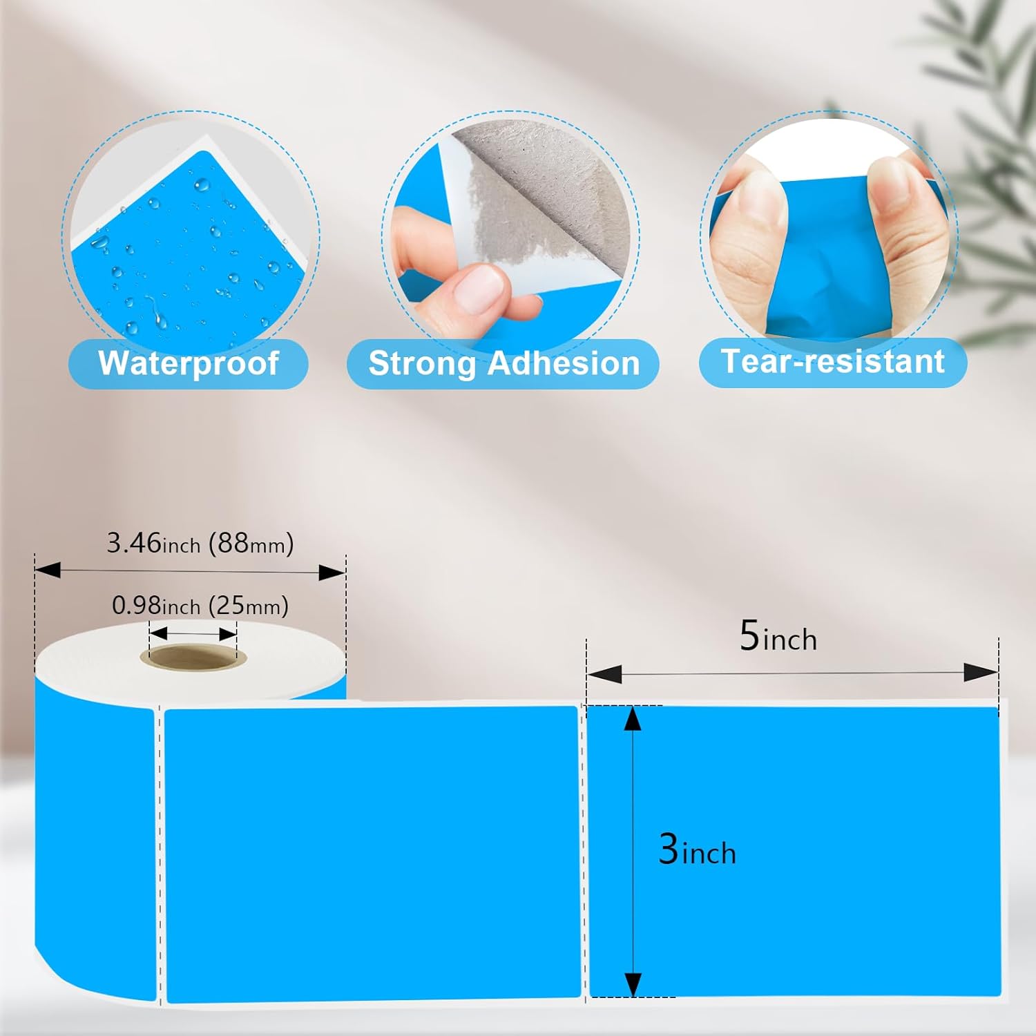 3 X 5 Inch Printable Rectangle Color Coding Labels, 300 Per Roll Adhesive Color Coding Stickers for Bar-Codes, Address, Small Business Labeling, Inventory, Fluorescent Blue