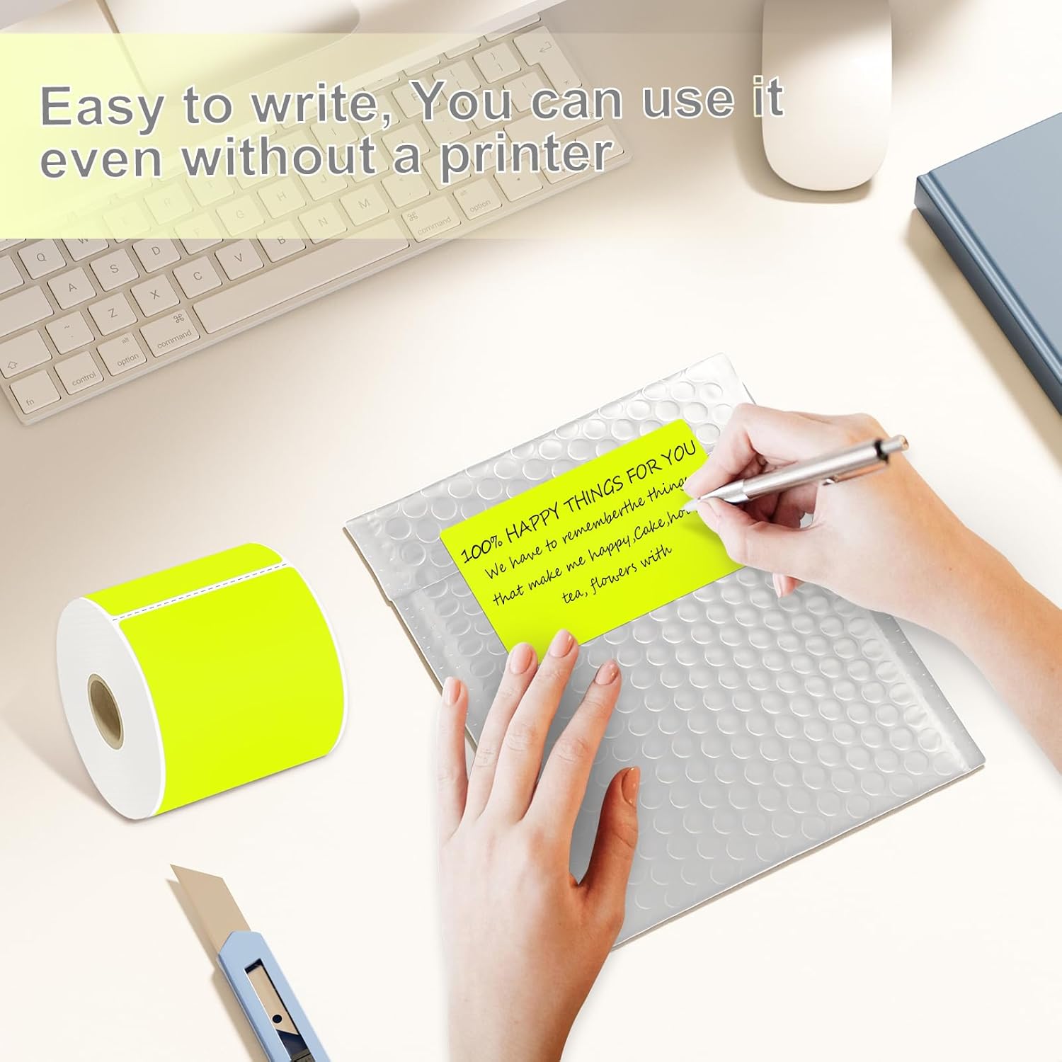 3 X 5 Inch Printable Rectangle Color Coding Labels, 300 Per Roll Adhesive Color Coding Stickers for Bar-Codes, Address, Small Business Labeling, Inventory, Fluorescent Yellow
