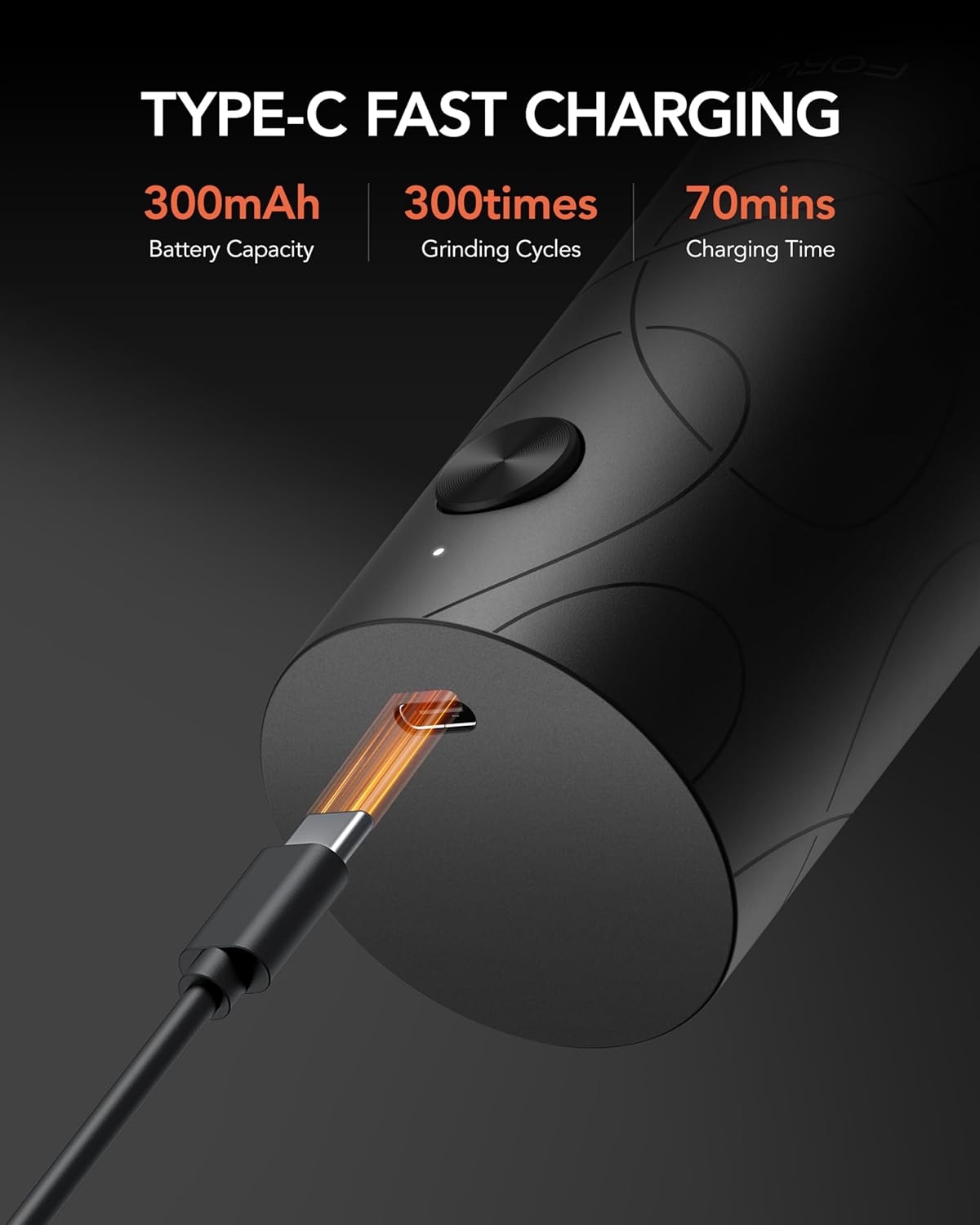 - USB Rapid Charging: FORLIM electric salt and pepper grinder set features a Type-C charging port for sustainable use. No more AAA battery hassles! Enjoy seamless fast charging right in your kitchen.