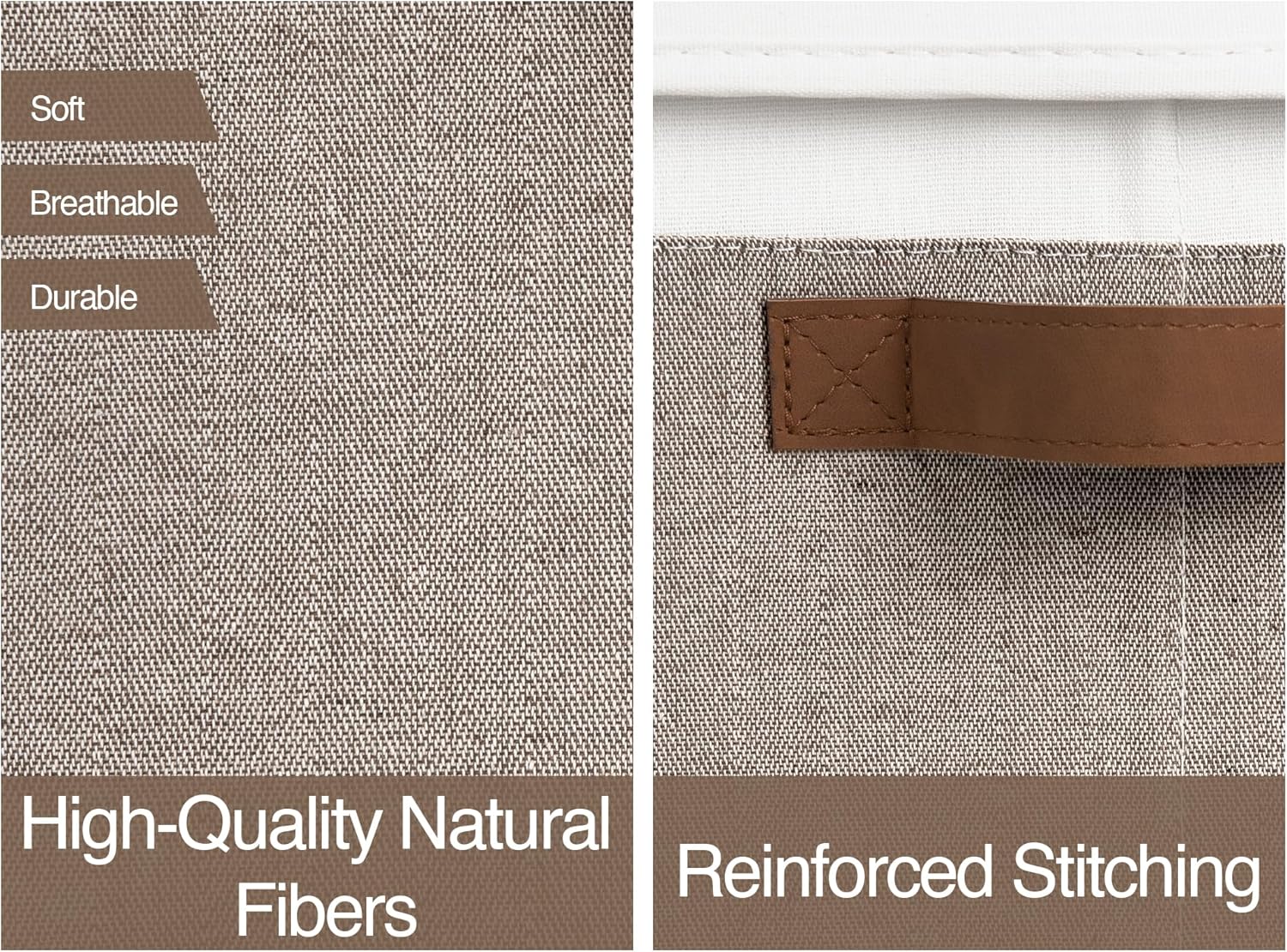 - Handle with Ease: With the 2 PU sewn handles on both sides of the storage bins, you can easily carry items without tearing the handles.