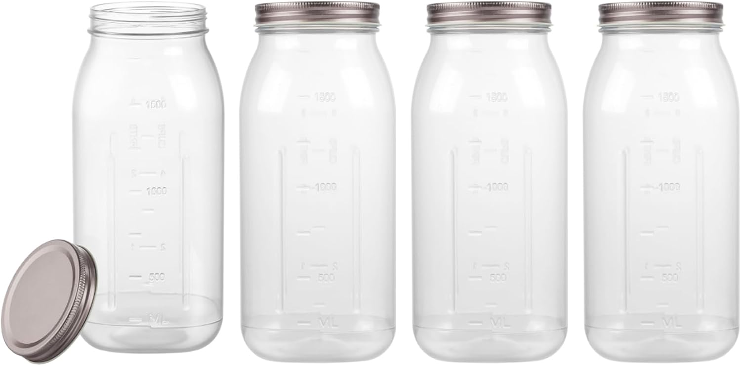 novelinks 64 oz Large Plastic Jars with Metal Lids - 4 Pack BPA-Free Clear Storage Containers for Pantry, Pickles, Sauces, Flour, Snacks - Leak-Proof Airtight Food Grade Jars for Kitchen (Rose Gold)