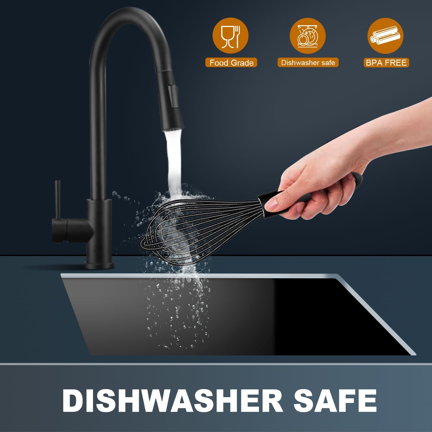 Mini Silicone Whisk, Small Silicone Whisk 7+9in, BPA free Non Scratch Coated Protect your Ceramic Pots and Pan.Perfect for Whisking, Beating, Mixing.Black